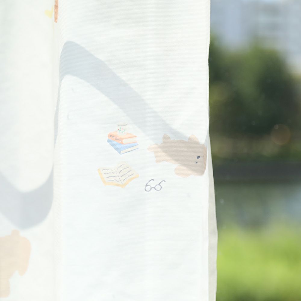 愛らしいイヌの何気ない日常をデザインしました。 イヌを飼ったことのある人なら、「あるある!」と思う場面が描かれているのでは? リラックス感のある優しいタッチで描いているので、寝室などのお部屋や子ども部屋にもおすすめです。 ご家庭での洗濯も可能なため、長く清潔にお使いいただけます。