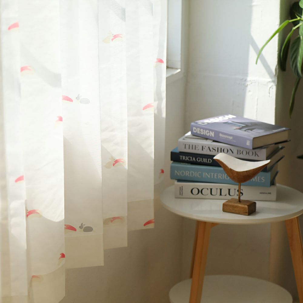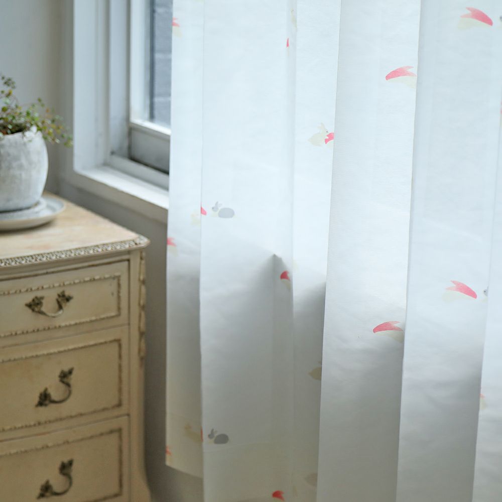 うさぎ型のりんごとうさぎ柄がデザインされた可愛さ溢れるレースカーテンです。 ほんのりピンクがかったりんごがアクセントになり、目を惹くデザインとなっています。 うさぎとりんごのデザインは和室との相性も良く、畳のお部屋にもおすすめです。 VENIRCでしか買えない特別なデザインです。 ご家庭での洗濯も可能なため、長く清潔にお使いいただけます。