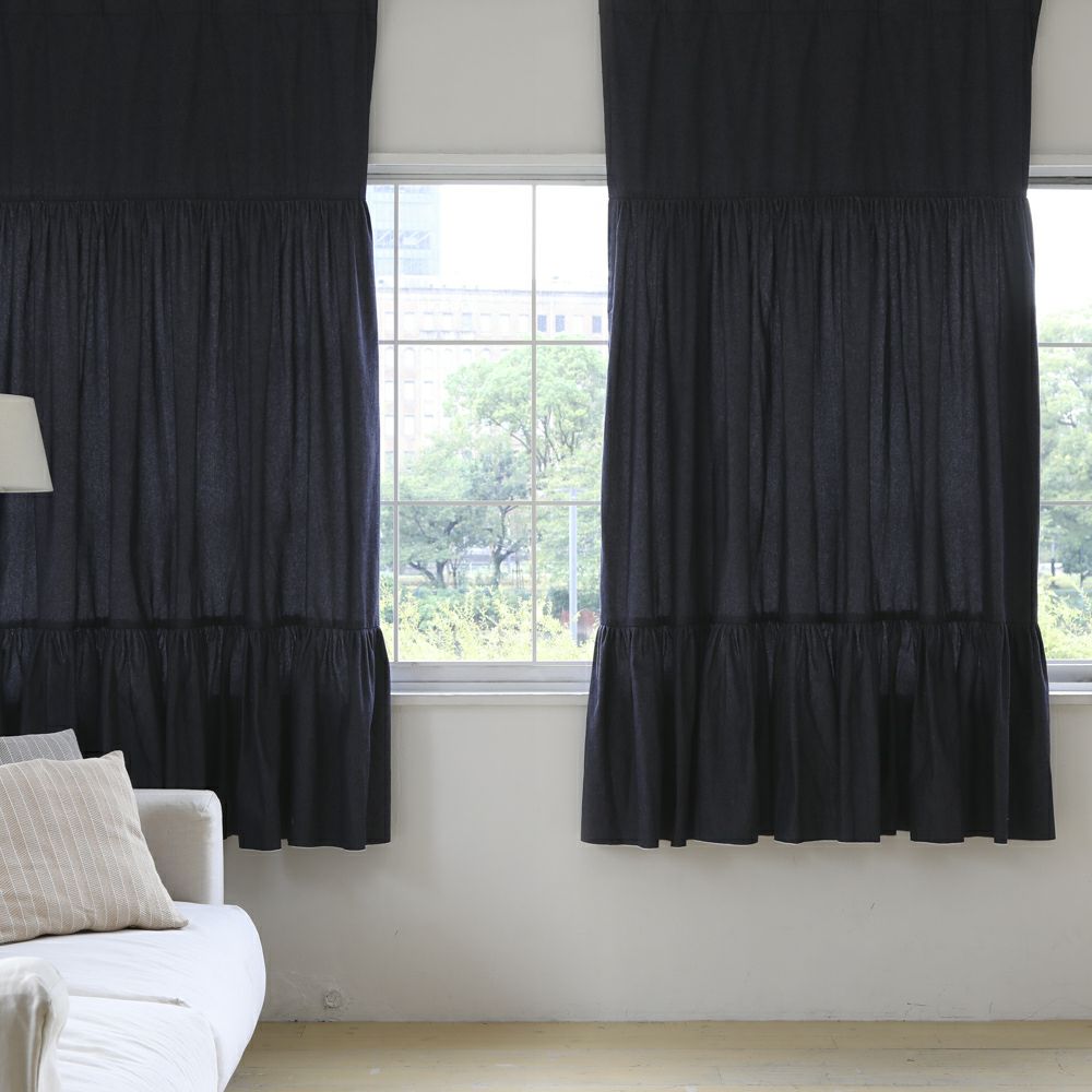 ラフなデニム素材に、軽やかで動きのあるフリルをプラスし、窓辺を遊び心たっぷりに演出します。