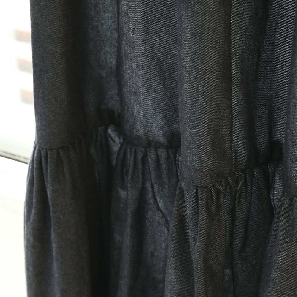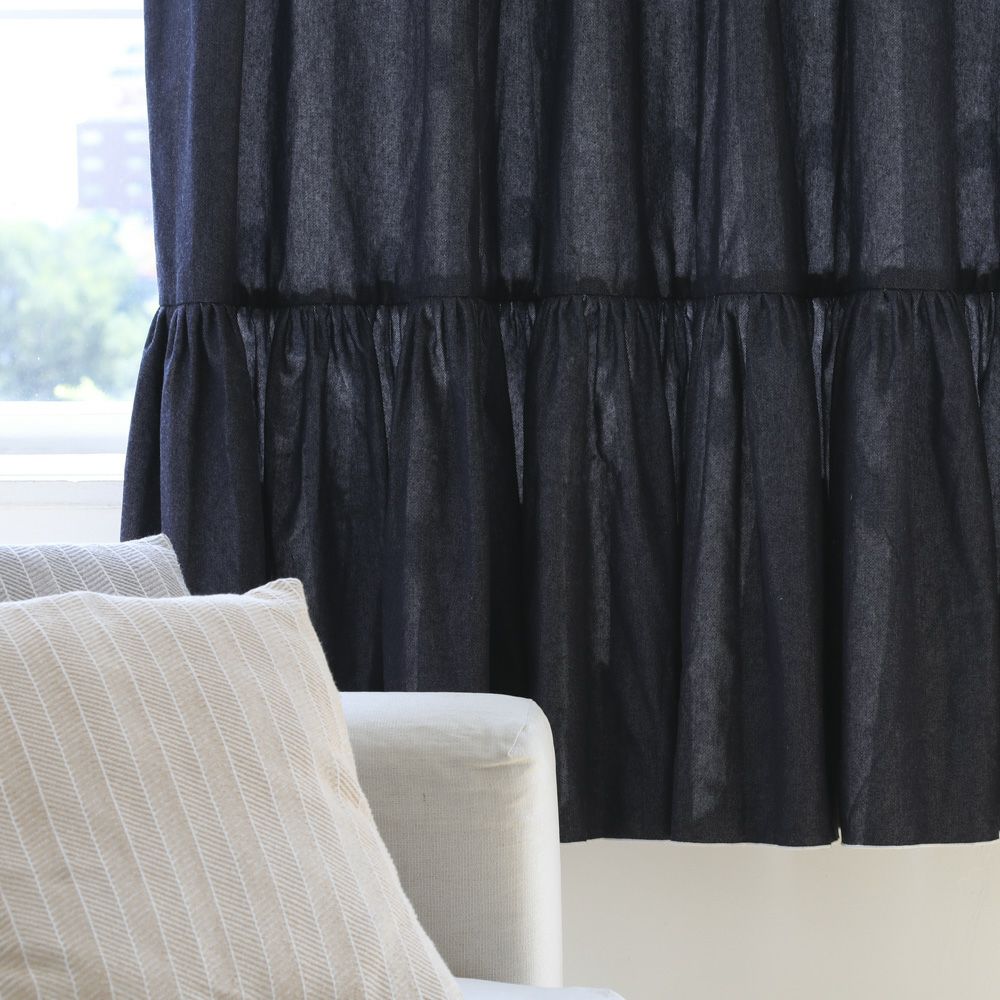 まるでデニムスカートのように重なったティアードフリルが目を引くカーテン。