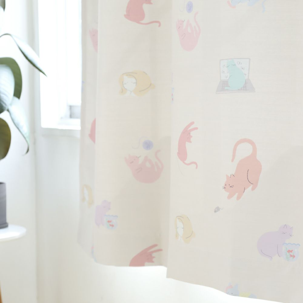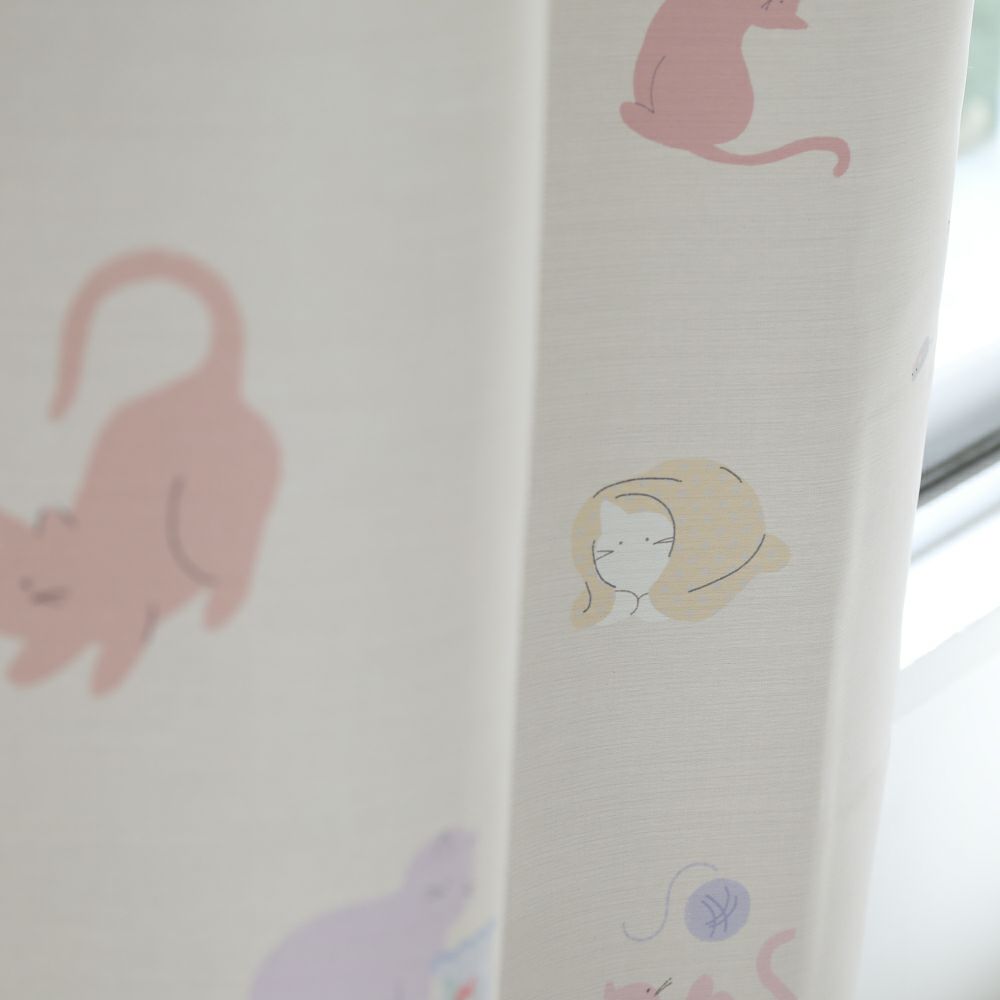 イタズラ好きなネコたちが散りばめられた、可愛らしいデザインのドレープカーテンです。 ネコたちがあちこちで遊んでいる様子が描かれ、見ているだけで微笑ましくなるデザインです。 ユニークでリズミカルなネコたちの姿が、お部屋に温かみと楽しさをプラス。 ペット好きやユニークなインテリアがお好きな方にぴったりなカーテンです。 レースカーテン【モチネコ】とのコーディネートもおすすめです。