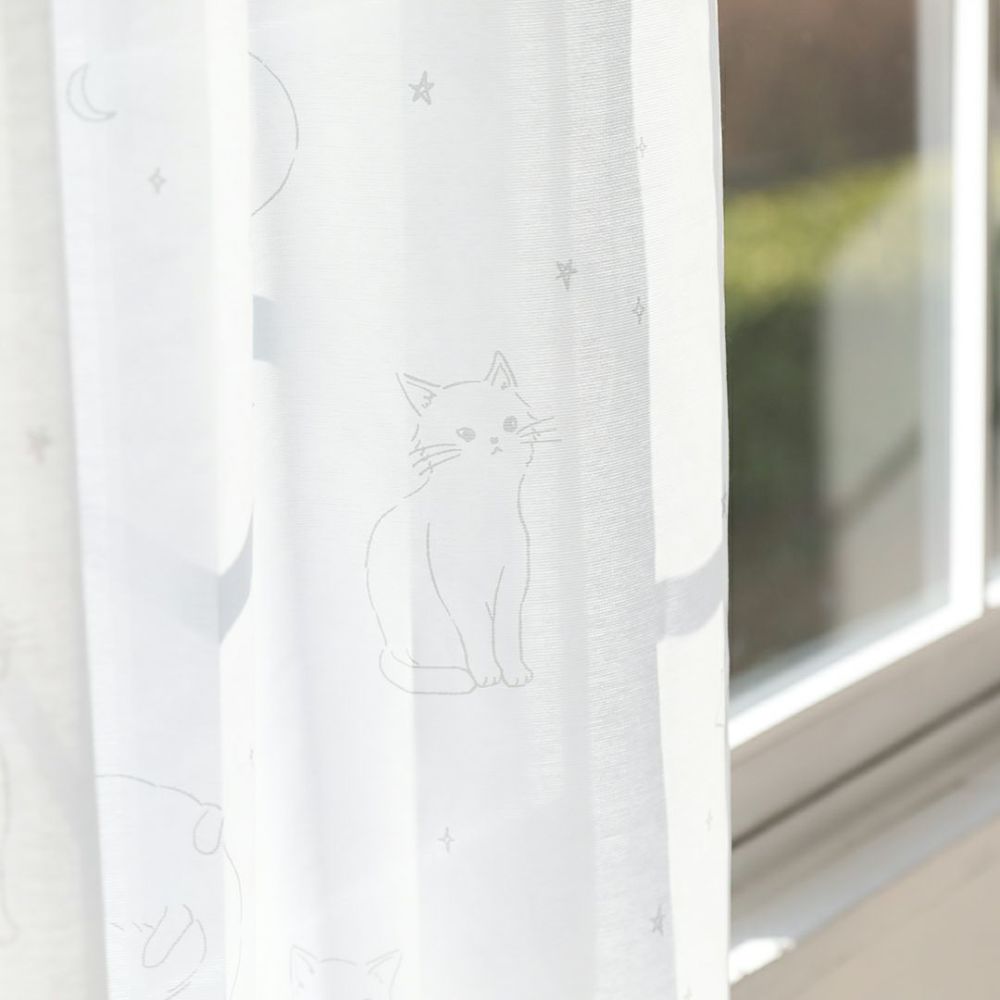 【レーススヤネコ】洗濯可 猫柄 レースカーテン
