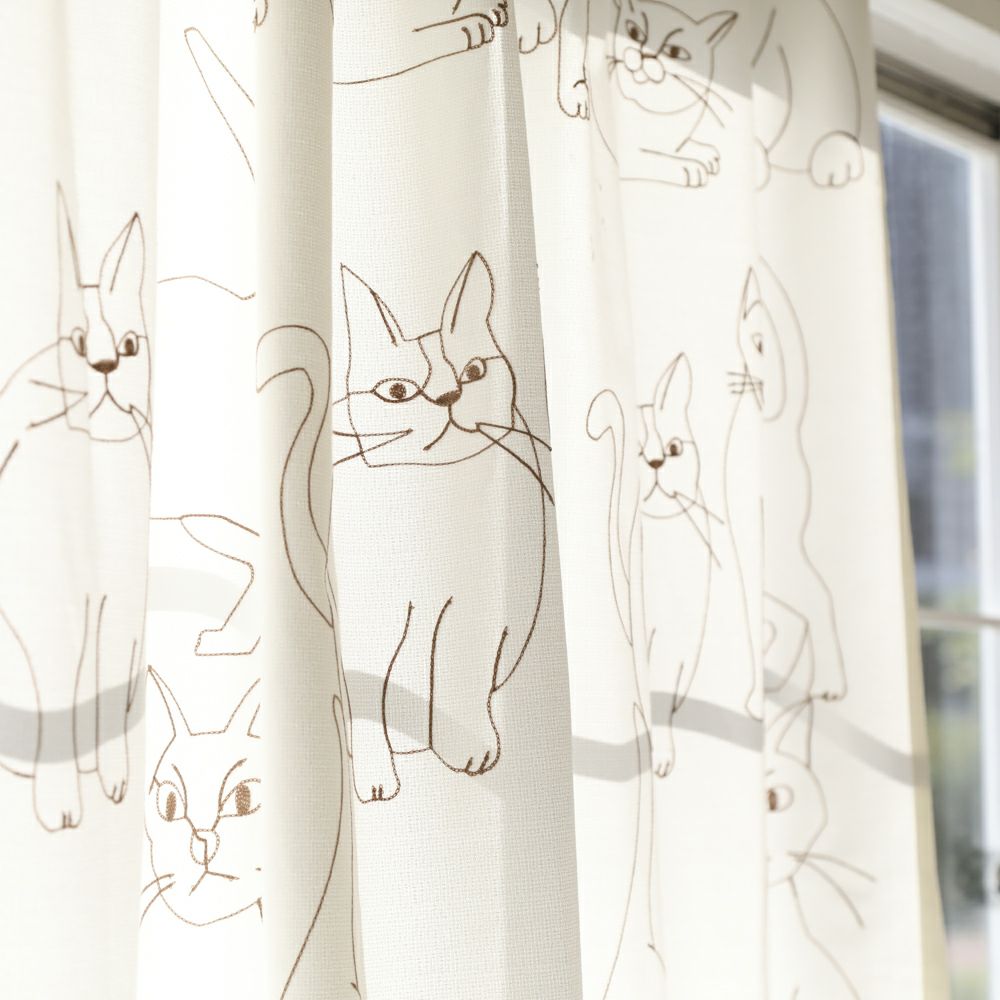 個性的な猫たちをモチーフにした線画デザインのドレープカーテンです。 シンプルながらもユーモアのあるタッチで描かれた猫たちが、空間に遊び心をプラスします。 お好みに合わせて選べる3色展開で、モダンな雰囲気にも、ナチュラルな空間にもマッチする万能デザイン。 猫好きの方にはたまらない一枚で、窓辺を楽しいアートギャラリーのように彩ります。