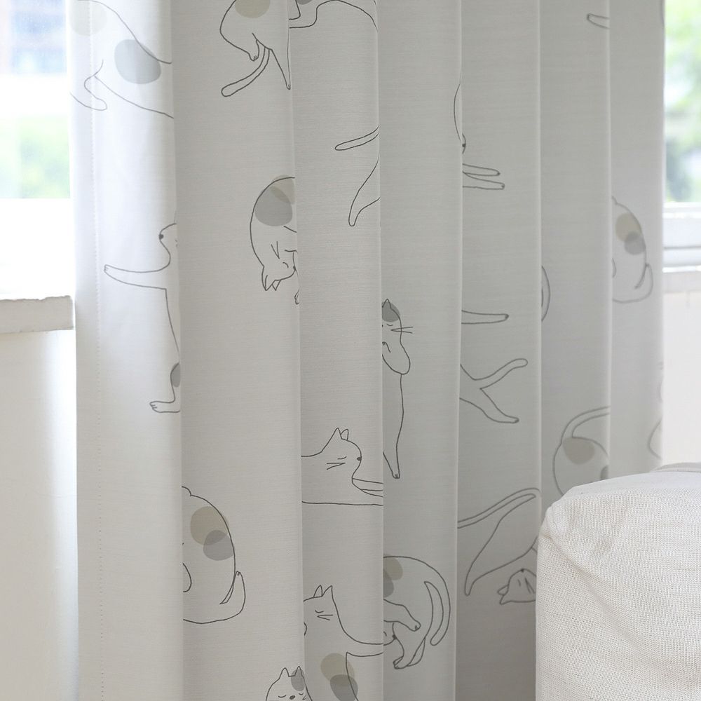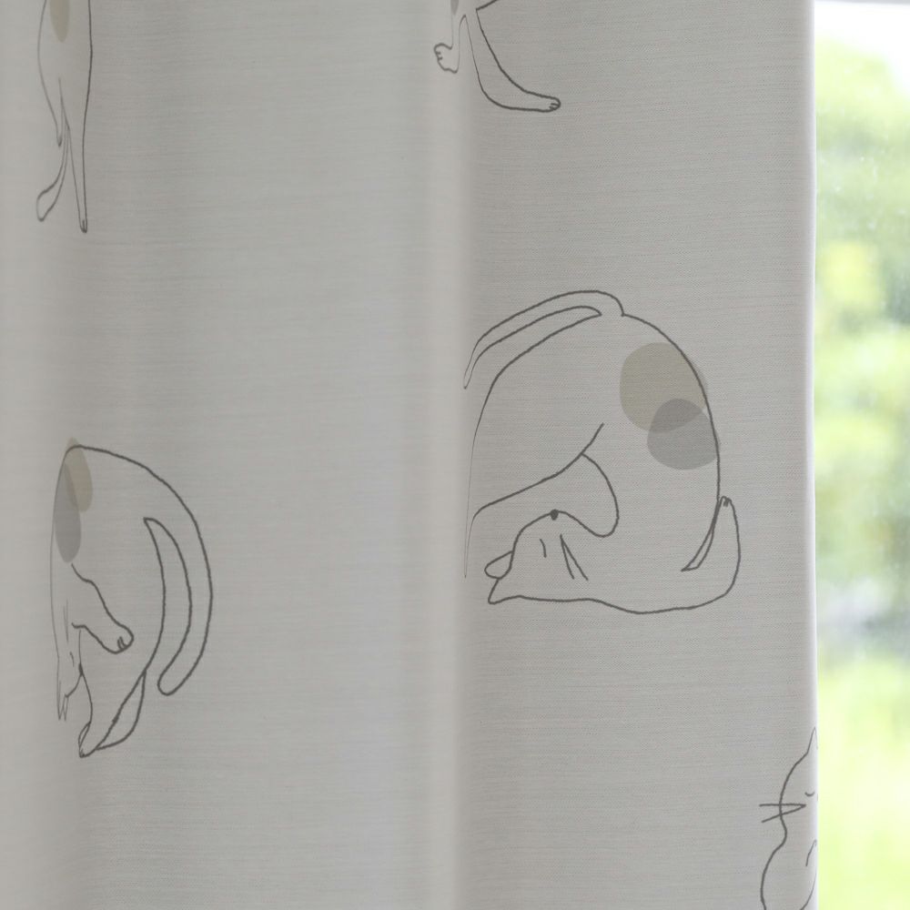 お部屋に、猫のゆるーいヨガタイム。 ゆるっと、のびーっと。ヨガする猫たちに癒されて。 ちょっぴりとぼけた表情の猫たちが、気ままにヨガポーズ。 シンプルな線画とやわらかいトーンで仕上げた、 毎日をふわっと心地よくしてくれる優しいカーテンです。 お部屋に、深呼吸したくなるようなリラックス感をどうぞ。 ※画像の商品は光の照射や角度により、実物と色味が異なる場合がございます。予めご了承ください。 ※本商品はセット商品ではなく、1枚単位での販売となっております。両開きでご使用の場合は2枚ご注文ください。