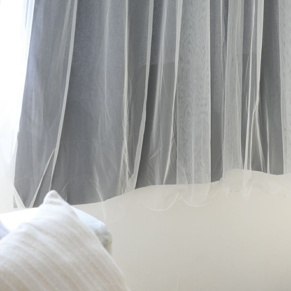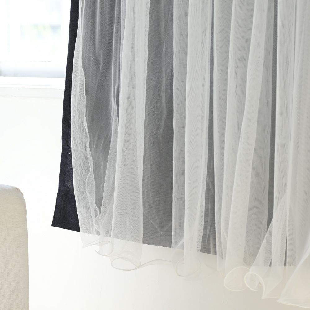 ボリュームたっぷりのチュールをデニムに重ねた、特別感のあるカーテン。