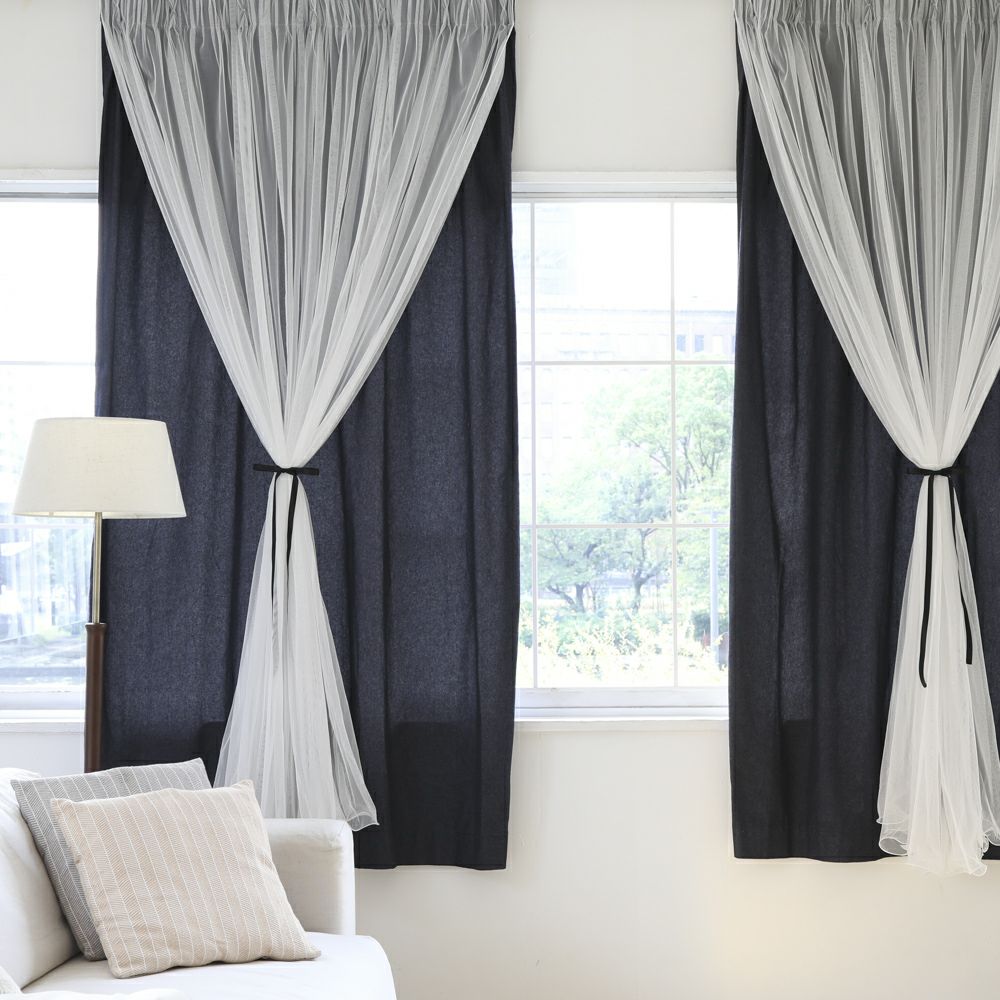 デニムカーテンとチュールの組み合わせで、窓辺を華やかに演出します。