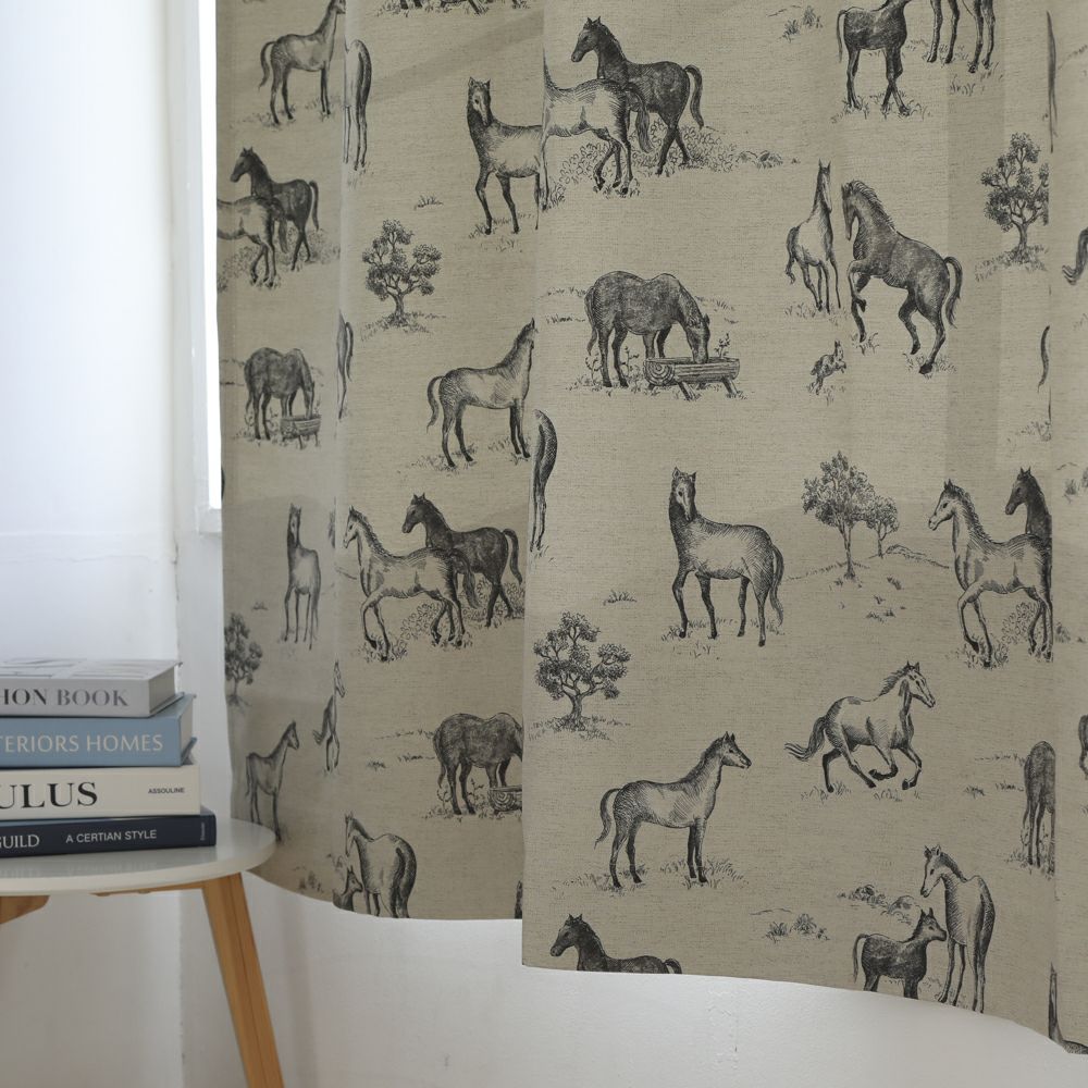 リアルで繊細なタッチで描かれた馬たちが、広大な牧場の穏やかな雰囲気をお部屋に運んでくれるカーテンです。