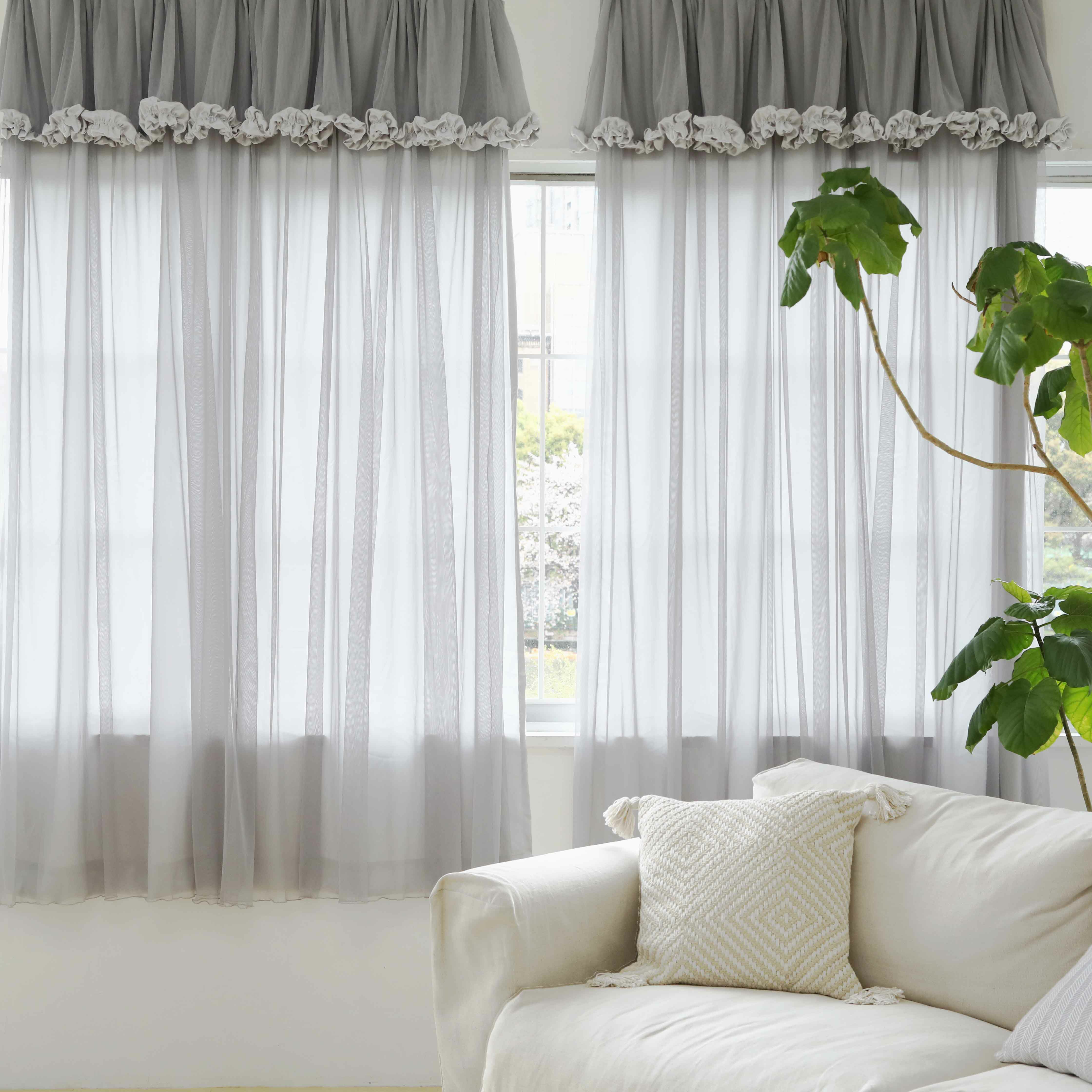 薄手のドレープカーテンとチュール生地のレースカーテンが2重になった一体型のカーテンです。