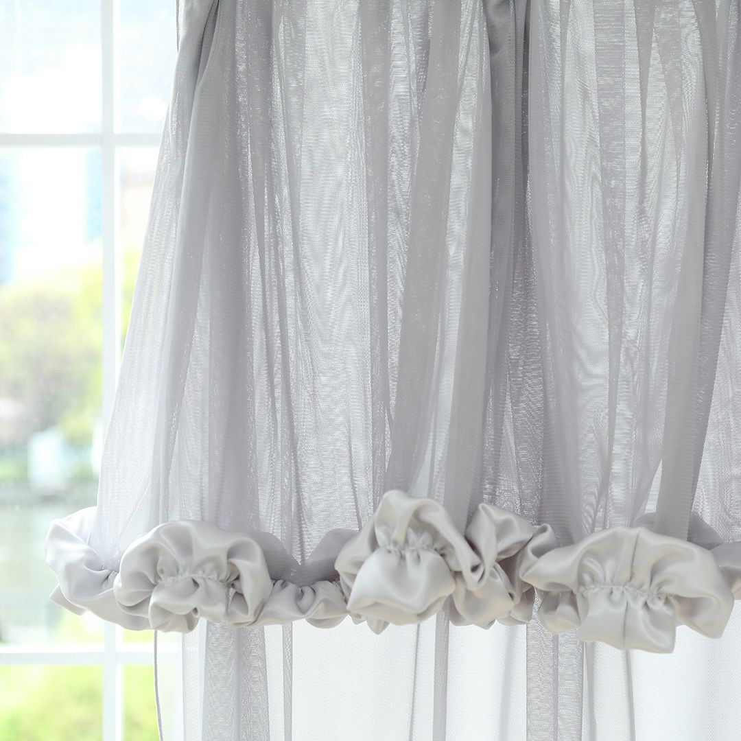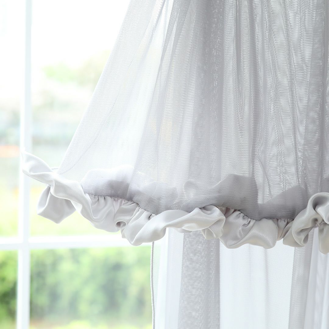 カーテン上部にはクラゲのようなぽわんとしたフリルを取り付け、可愛い雰囲気に仕上げました。