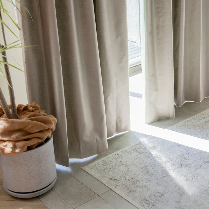 [malmi]シリーズは生地にハリ・光沢感があります。裏地に完全遮光を実現する「四層コーティング加工」を施しており、断熱・保温効果、防音効果にも優れています。 ご家庭での手洗い洗濯も可能なため、長く清潔にお使いいただけます。