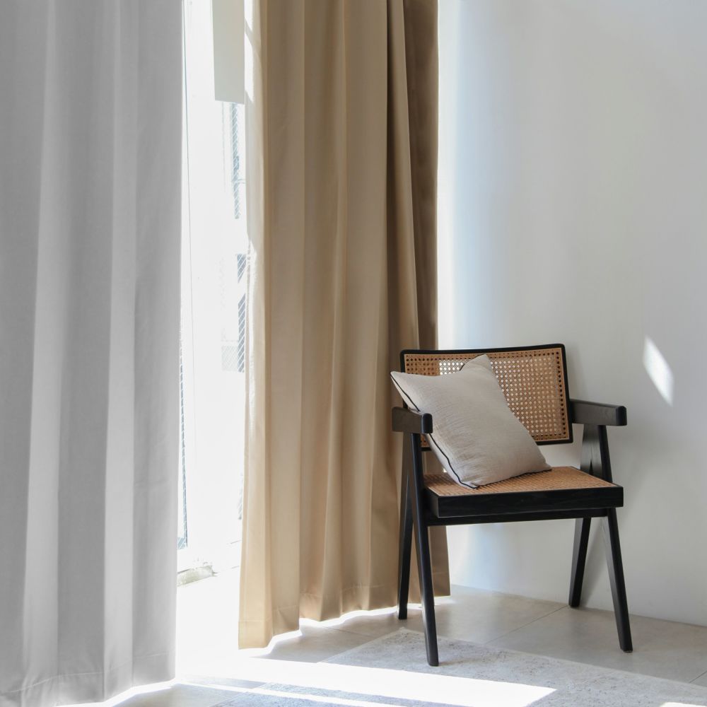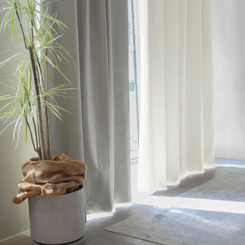 シルク調の糸をタテ糸に使用し、艶感を持たせた上質感のある生地です。生地の裏面に4層ラミネートを施し、1級遮光生地に仕上げています。ご家庭での洗濯も可能なため、長く清潔にお使いいただけます。 適度にハリ・固さのある生地に仕上げました。1級遮光カーテンかつ防炎機能付きの非常に高機能なカーテンです。インテリアを引き立てるベーシックなカラー展開も魅力的。