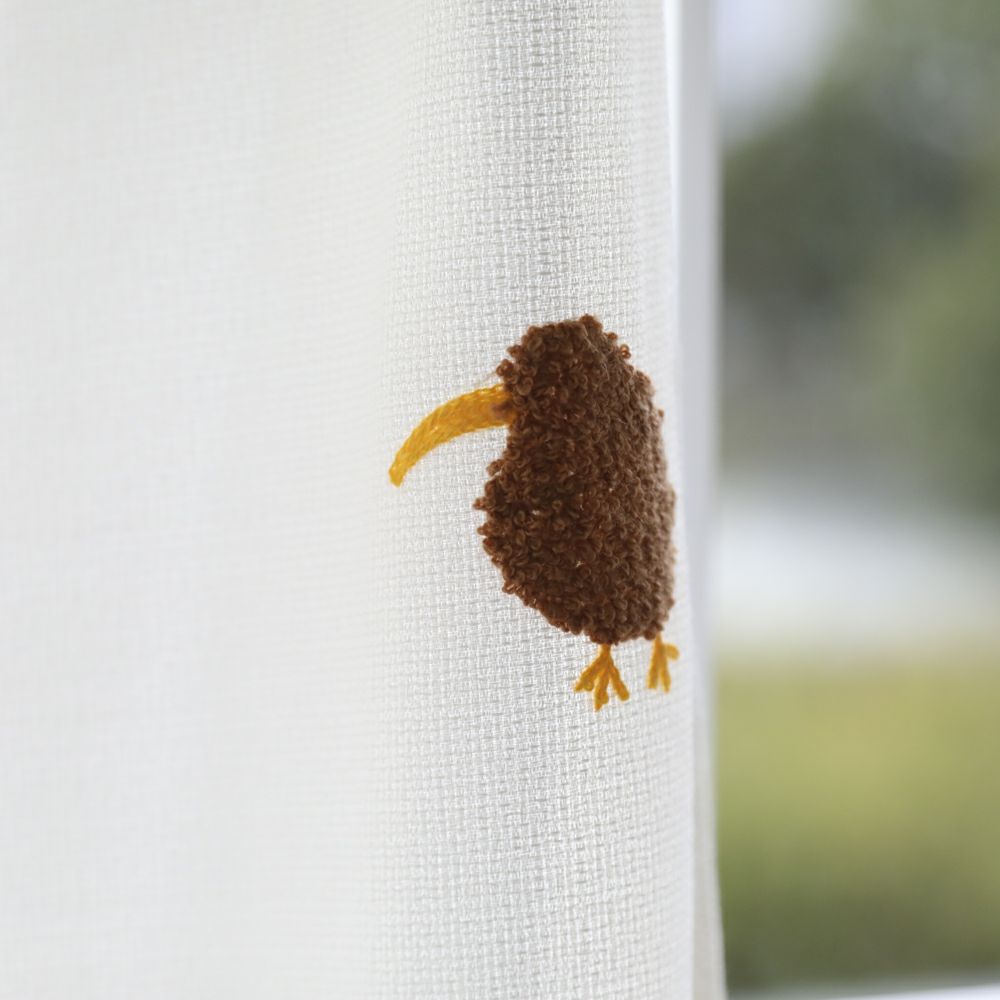 もこもことした立体的な刺繍で、果物のキウイと愛らしい鳥の「キーウィ」をあしらったユニークなデザインのドレープカーテンです。 自然のモチーフと柔らかな生地が、お部屋に温かみと遊び心をプラスします。 かわいらしいデザインは、子供部屋はもちろん、リラックス空間にもぴったり。 優しい雰囲気を演出するカーテンで、毎日の暮らしにほっとするひとときを。
