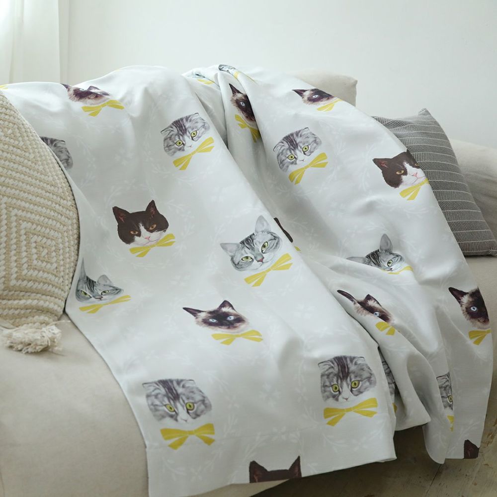 黄色の可愛いリボンでおめかしをした猫をデザインしました。 リアルを追求した表情豊かな猫たちは見ていて飽きないデザインです。 可愛い猫たちに囲まれた癒される生活はいかがでしょうか? 当店の猫好きデザイナーによるオリジナル柄です。 VENIRCでしか買えない特別なデザインです。 ご家庭での洗濯も可能なため、長く清潔にお使いいただけます。