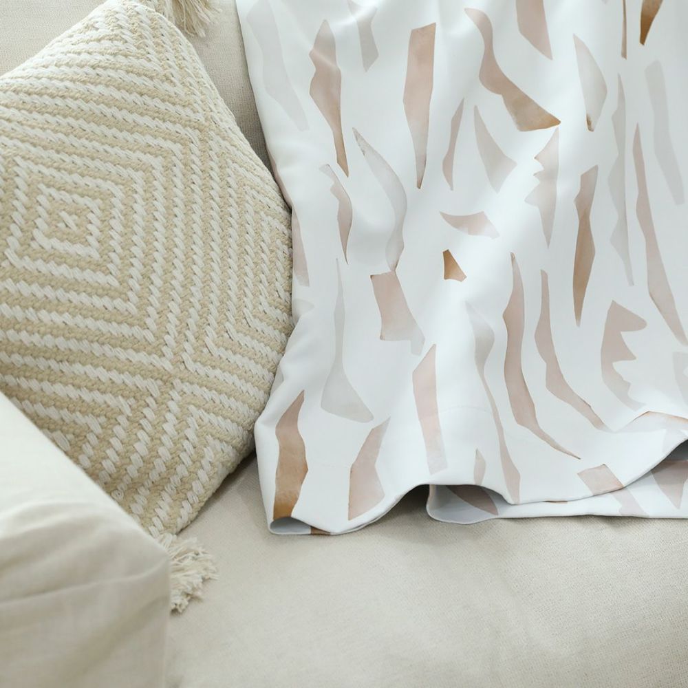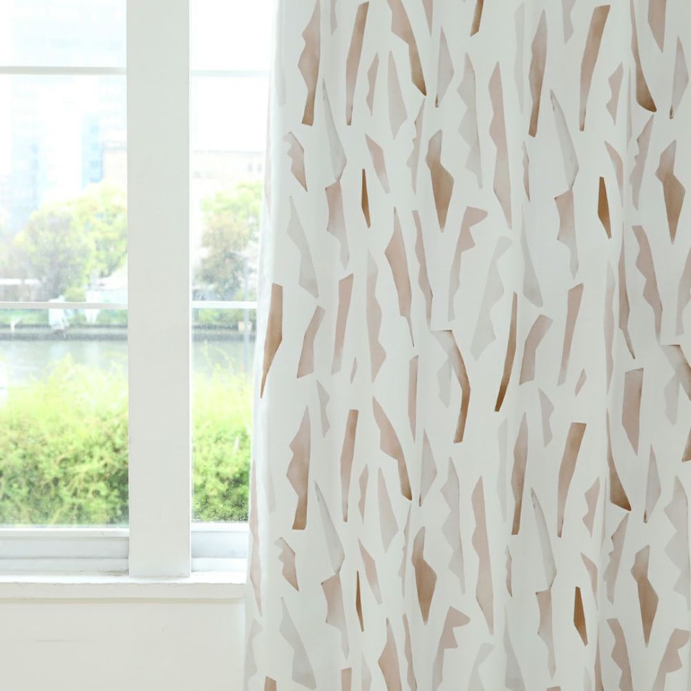 柔らかな色合いで水彩画風に描かれた幾何学柄のカーテンです。 ベージュ・ブラウン系の優しい色でデザインされているため、ナチュラル系のお部屋との相性抜群です。 ベニークのテキスタイルデザイナーによるオリジナルプリント柄。ここでしか買えない限定商品です。 ご家庭での洗濯も可能なため、長く清潔にお使いいただけます。