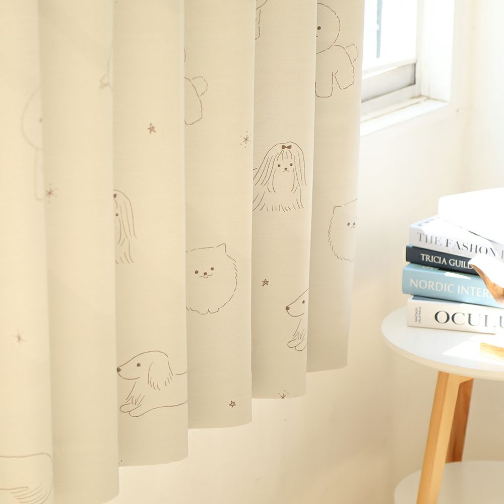 ゆるっとした表情のいぬに癒されるデザインのカーテンです。 手書き風の線で描かれており、リラックス感があるデザインなので、寝室などの落ち着いたお部屋にもおすすめです。 VENIRCでしか買えない特別なデザインです。 ご家庭での洗濯も可能なため、長く清潔にお使いいただけます。
