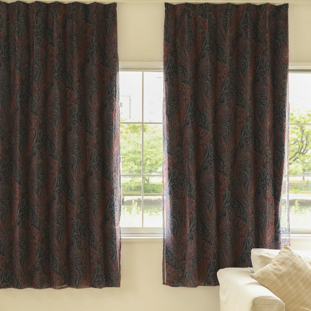 ペイズリー柄 一体型二重カーテン 【1級遮光レイヤードカーテン【フェリックス・レゾン】 】 幅100cmX丈178cm 2枚入り