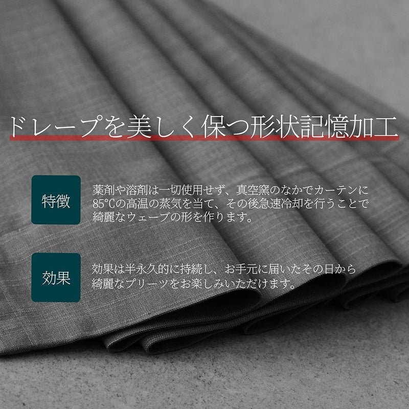 上品な光沢感のある生地に、リーフ柄をデザイン。生地の裏面に4層コーティング加工をしているので、完全遮光・断熱保温効果・防音効果を備えています。 手洗いでのお洗濯可能なので、長く清潔にお使いいただけます。