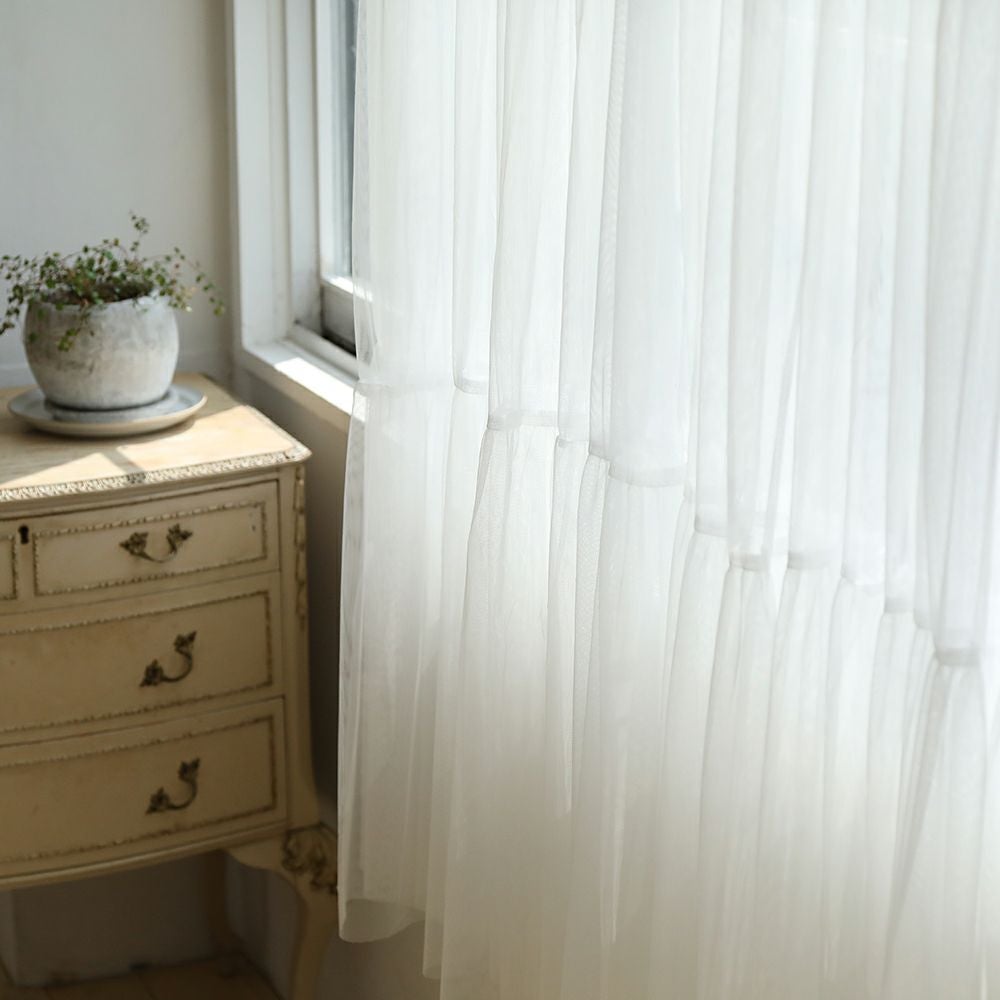 【ティアードチュールフリル(海外受注生産品)】 洗濯可 フリルカーテン レースカーテン