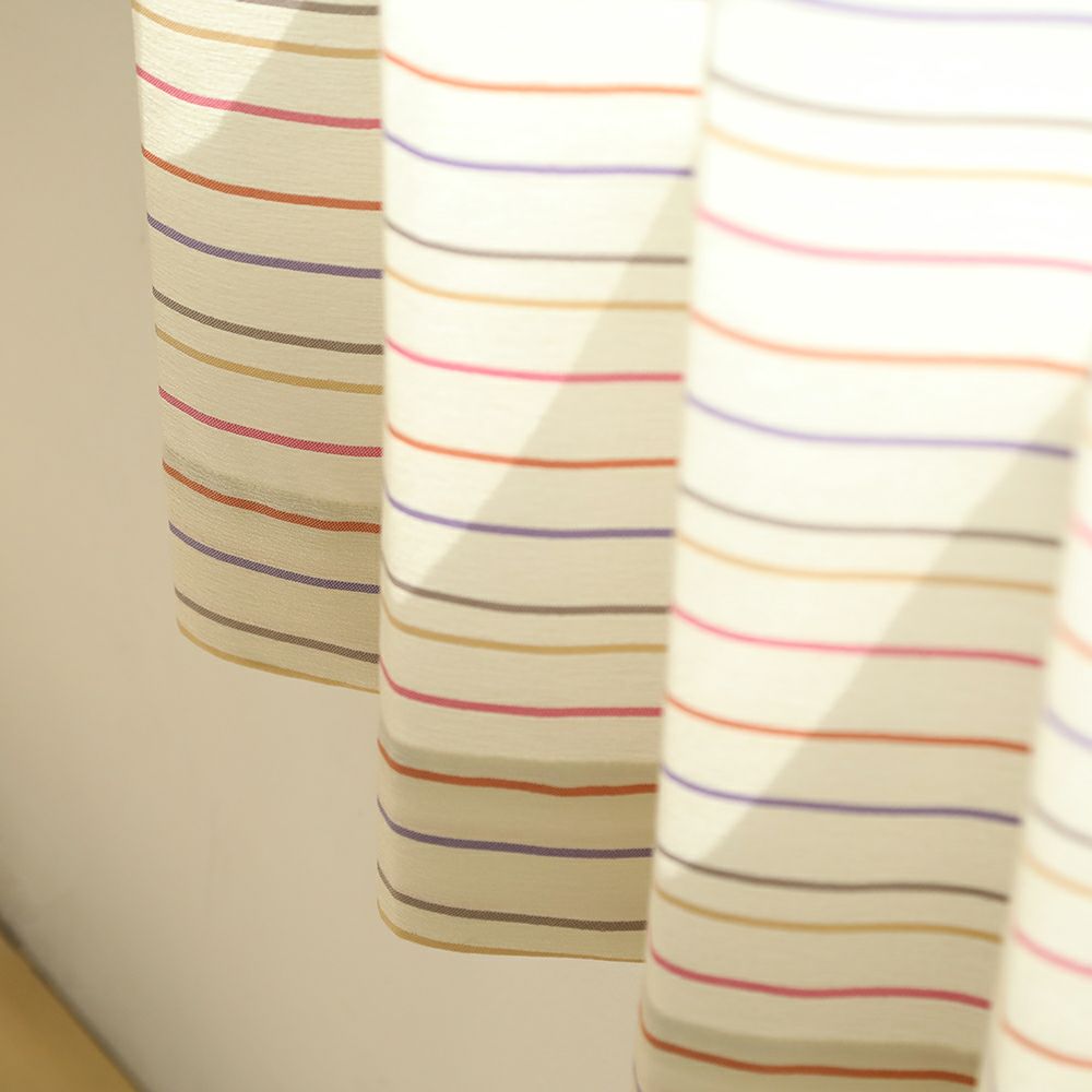 5色のカラフルな色のボーダーをデザイン。 どこか懐かしい印象のレトロポップなデザインです。 光を柔らかく取り入れる生地なので、太陽の光を取り入れた健康的な生活をしたい方におすすめです。 ご家庭での洗濯も可能なため、長く清潔にお使いいただけます。