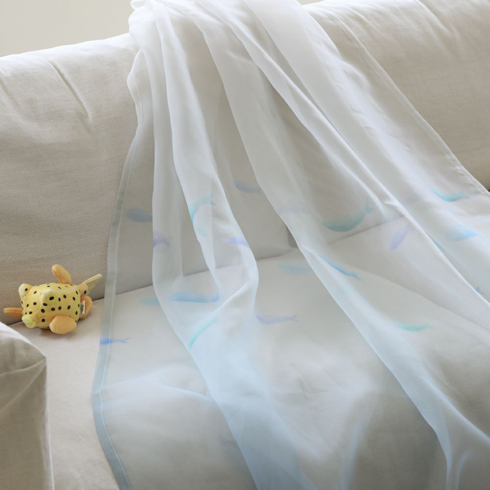 お部屋の窓辺を、魚たちがふわりと泳ぐ。 まるで水中をおさんぽしているような、やさしい透け感と淡いカラーのレースカーテンです。 光と風を感じながら、心までゆったり癒やされるデザイン。 ※画像の商品は光の照射や角度により、実物と色味が異なる場合がございます。予めご了承ください。 ※本商品はセット商品ではなく、1枚単位での販売となっております。両開きでご使用の場合は2枚ご注文ください。 組み合わせにおすすめの商品は、【シリーズ商品】リンクよりご覧いただけます。
