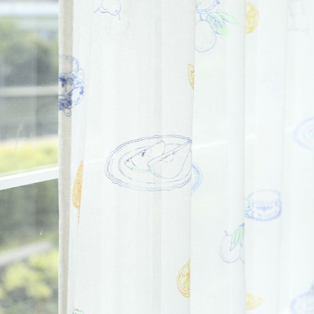 爽やかな香りに囲まれていただく初夏のティータイムをイメージしました。 柑橘系のフルーツやスイーツのデザインです。 ほんのりベージュがかった色合いと、柔らかな質感の生地により、どこかほっとする雰囲気を演出します。 VENIRCでしか買えない特別なデザインです。 ご家庭での洗濯も可能なため、長く清潔にお使いいただけます。