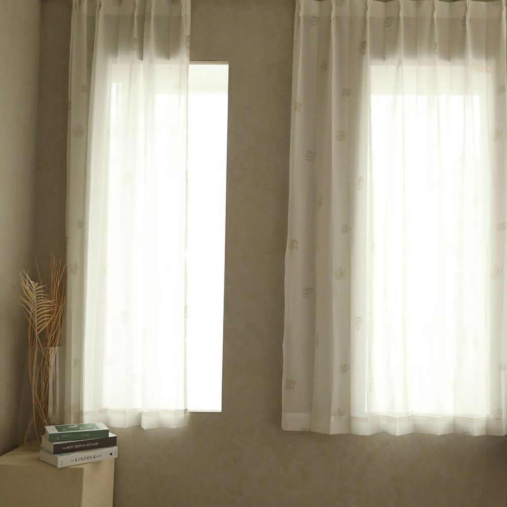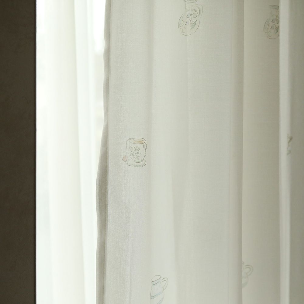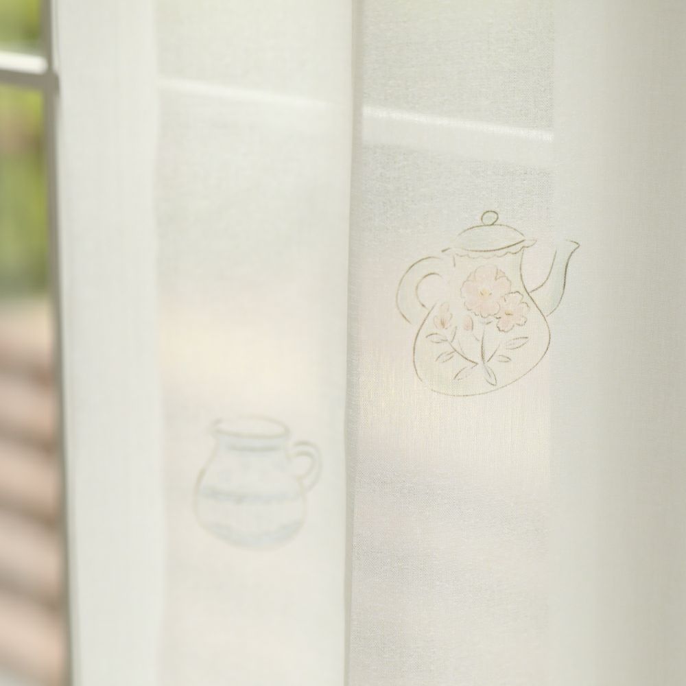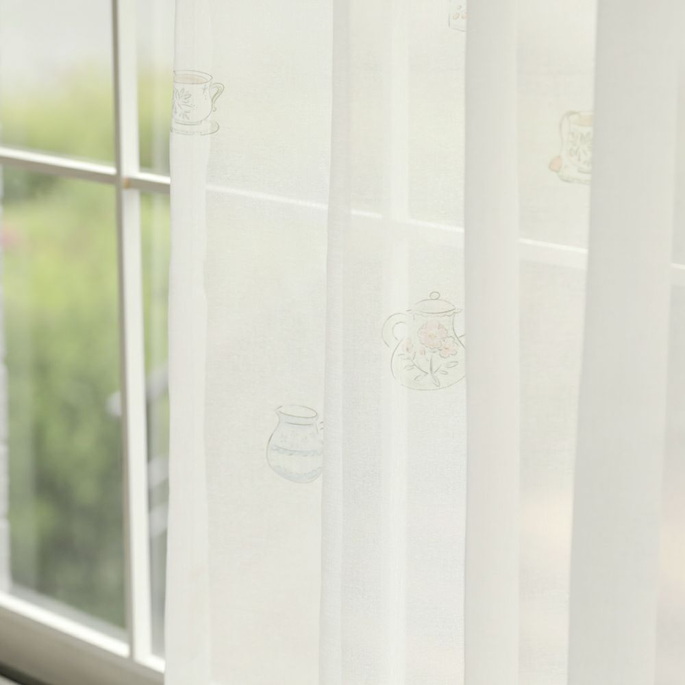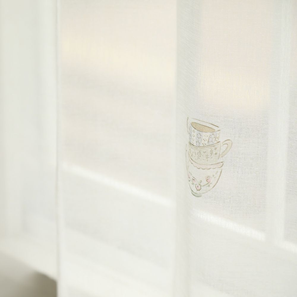 アンティークな雰囲気たっぷりのティーカップ柄レースカーテンです。 ほんのりベージュがかった色合いと、柔らかな質感の生地により、どこかほっとする雰囲気を演出します。 ナチュラル系のインテリアにも相性抜群です。 VENIRCでしか買えない特別なデザインです。 ご家庭での洗濯も可能なため、長く清潔にお使いいただけます。