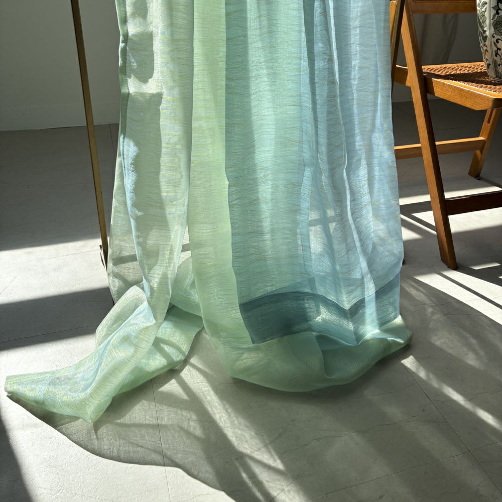 それぞれ異なる色のオーガンジーを重ねたシャンブレー仕立てのため、光の当たり方や角度によって見え方が変化し、奥行きのある上品な印象を演出します。