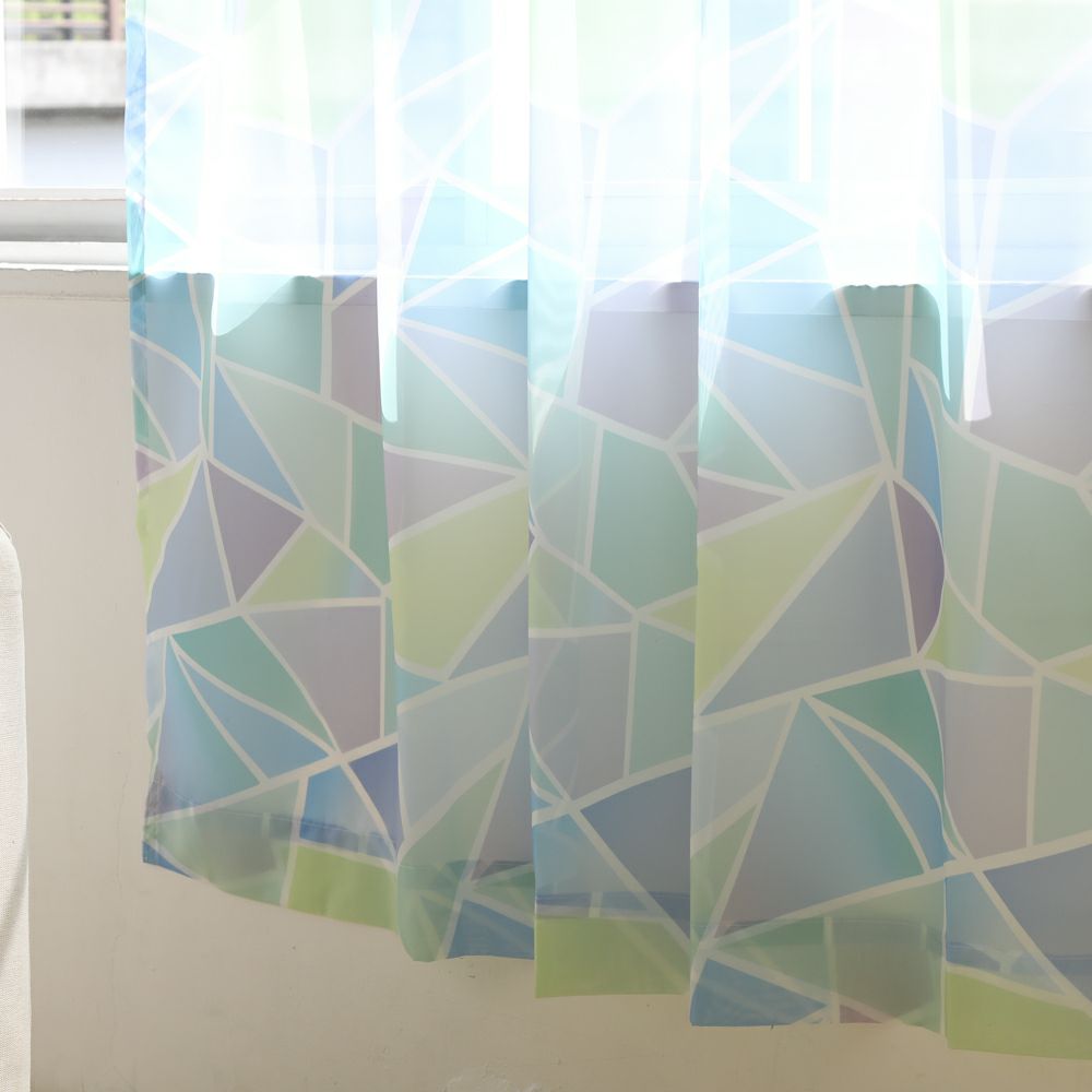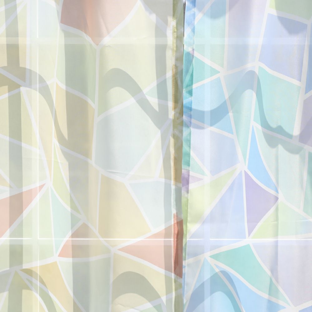 ステンドグラスのようなカラフルな色合いが楽しめるレースカーテン。