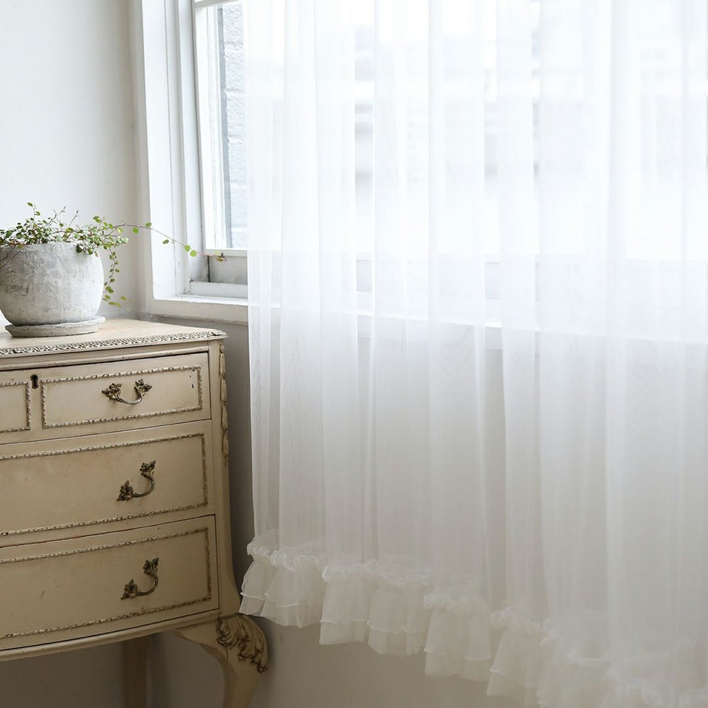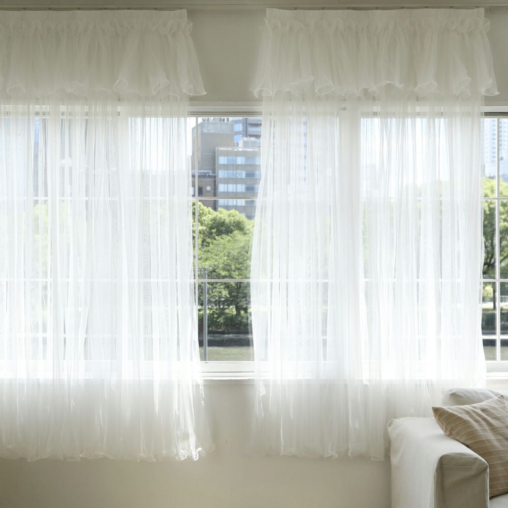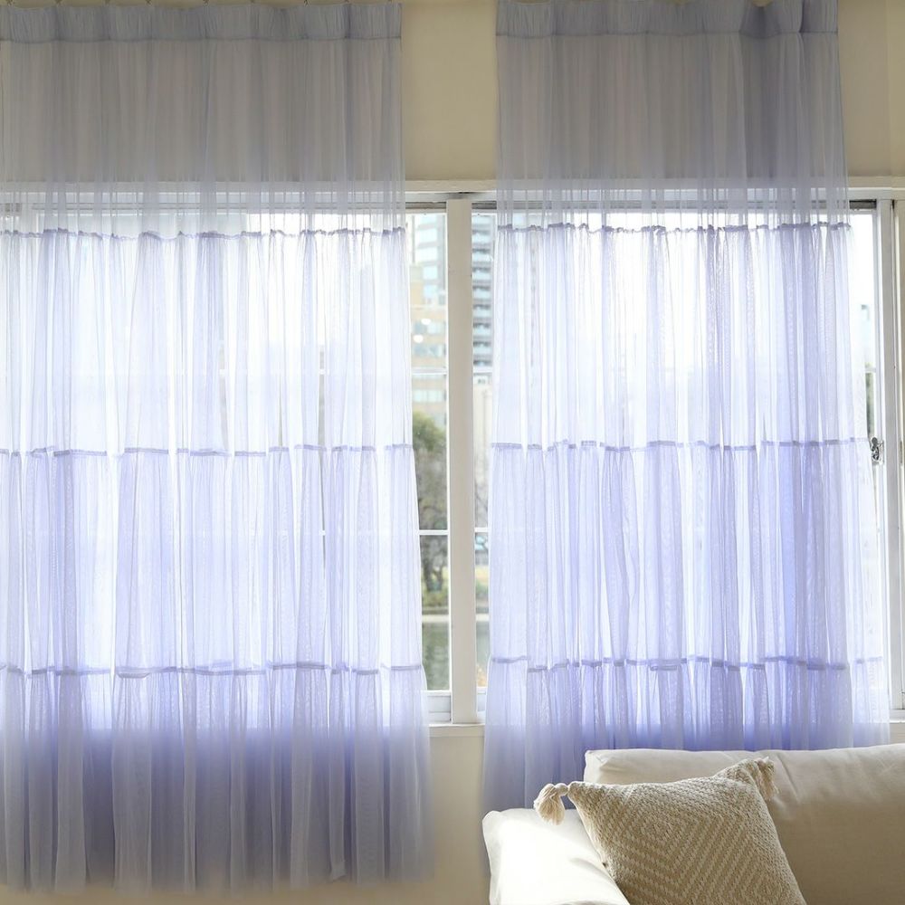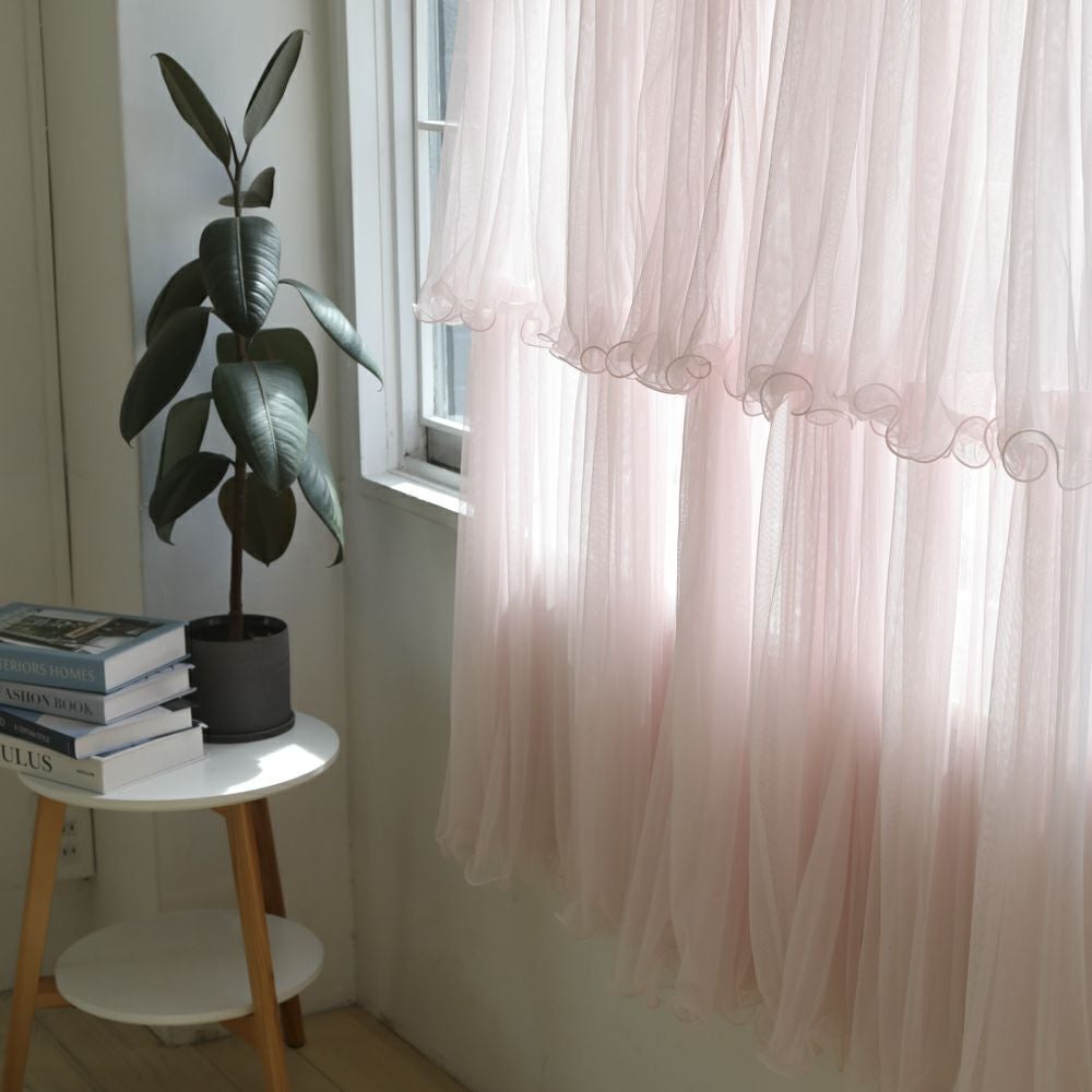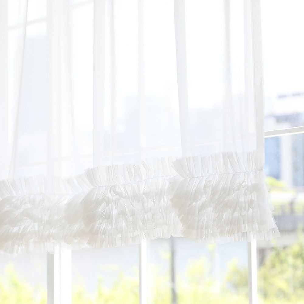 【カラードティアードチュールフリル(海外受注生産品)】 選べる4色 洗濯可 フリルカーテン レースカーテン
