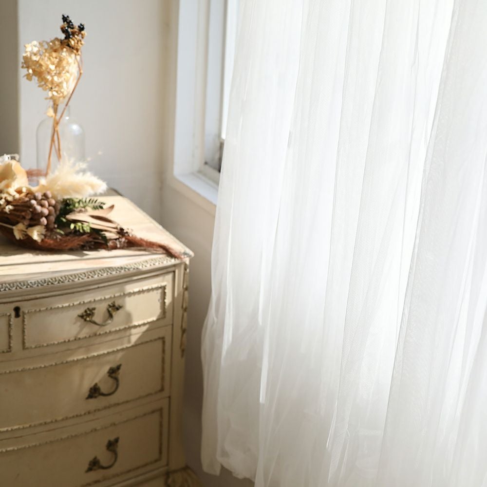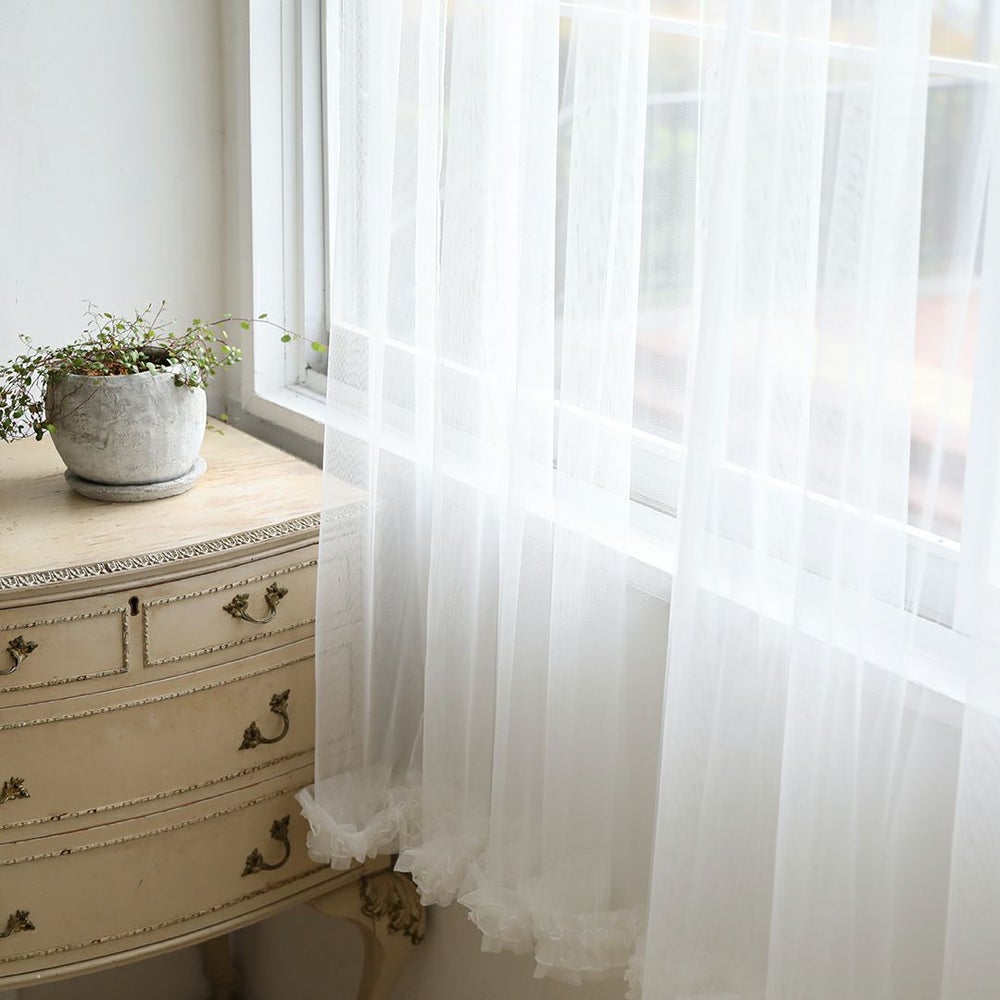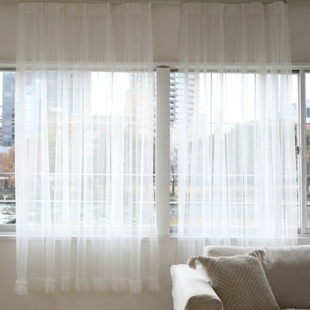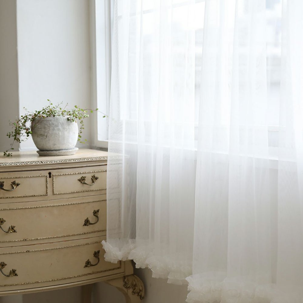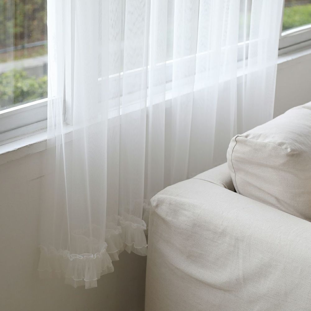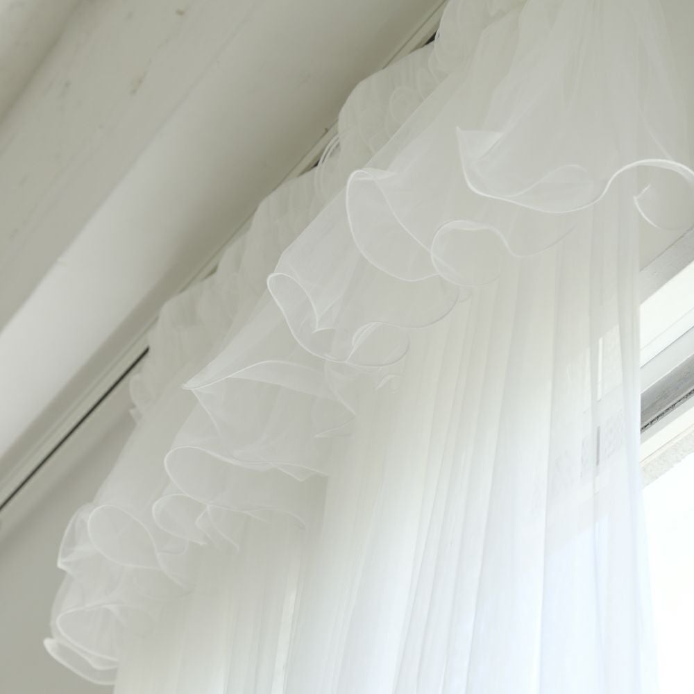 【カラードティアードチュールフリル(海外受注生産品)】 選べる4色 洗濯可 フリルカーテン レースカーテン