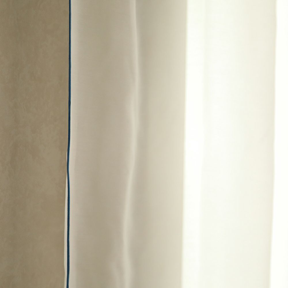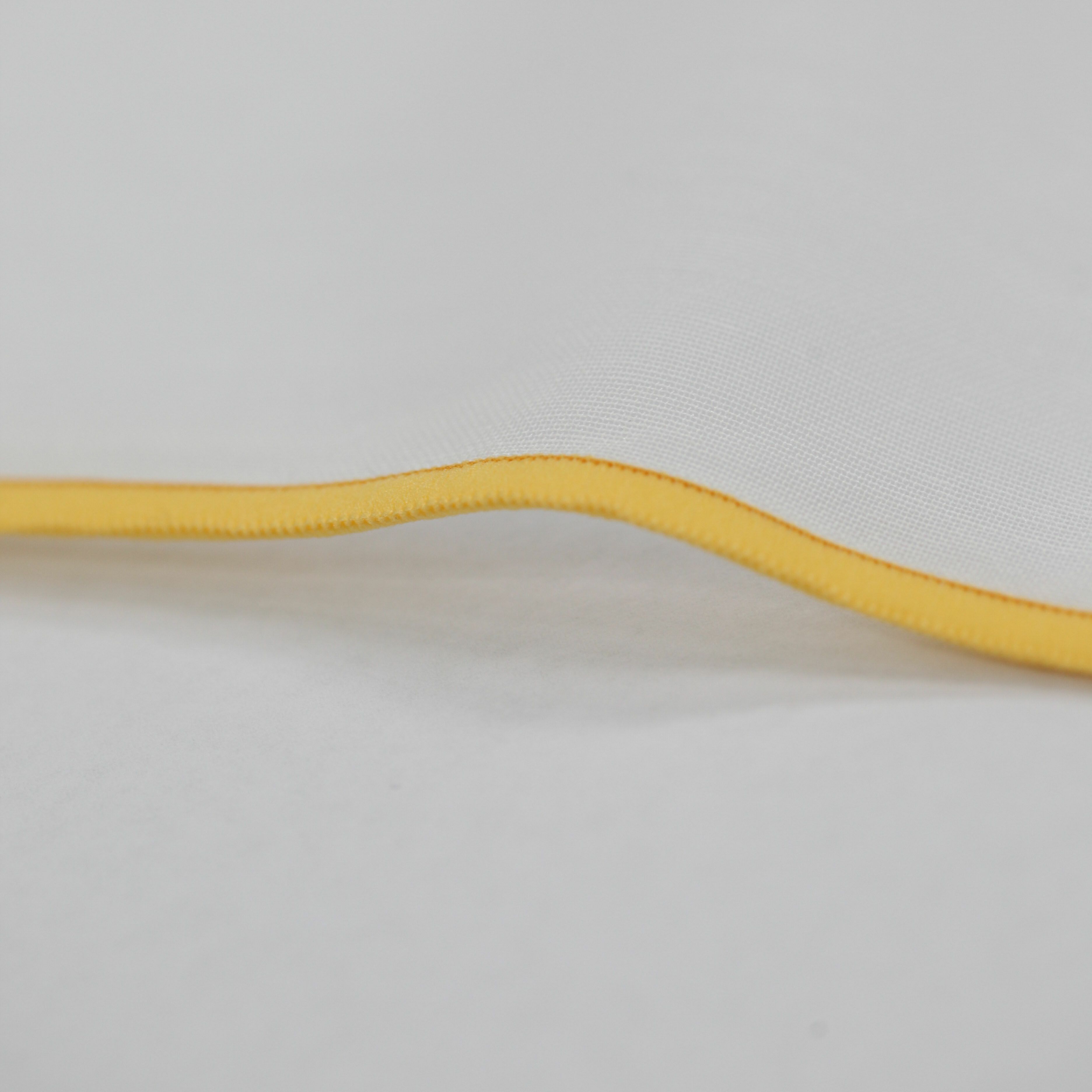 シンプルな生地に、左右と裾部分にパイピング加工を施しました。