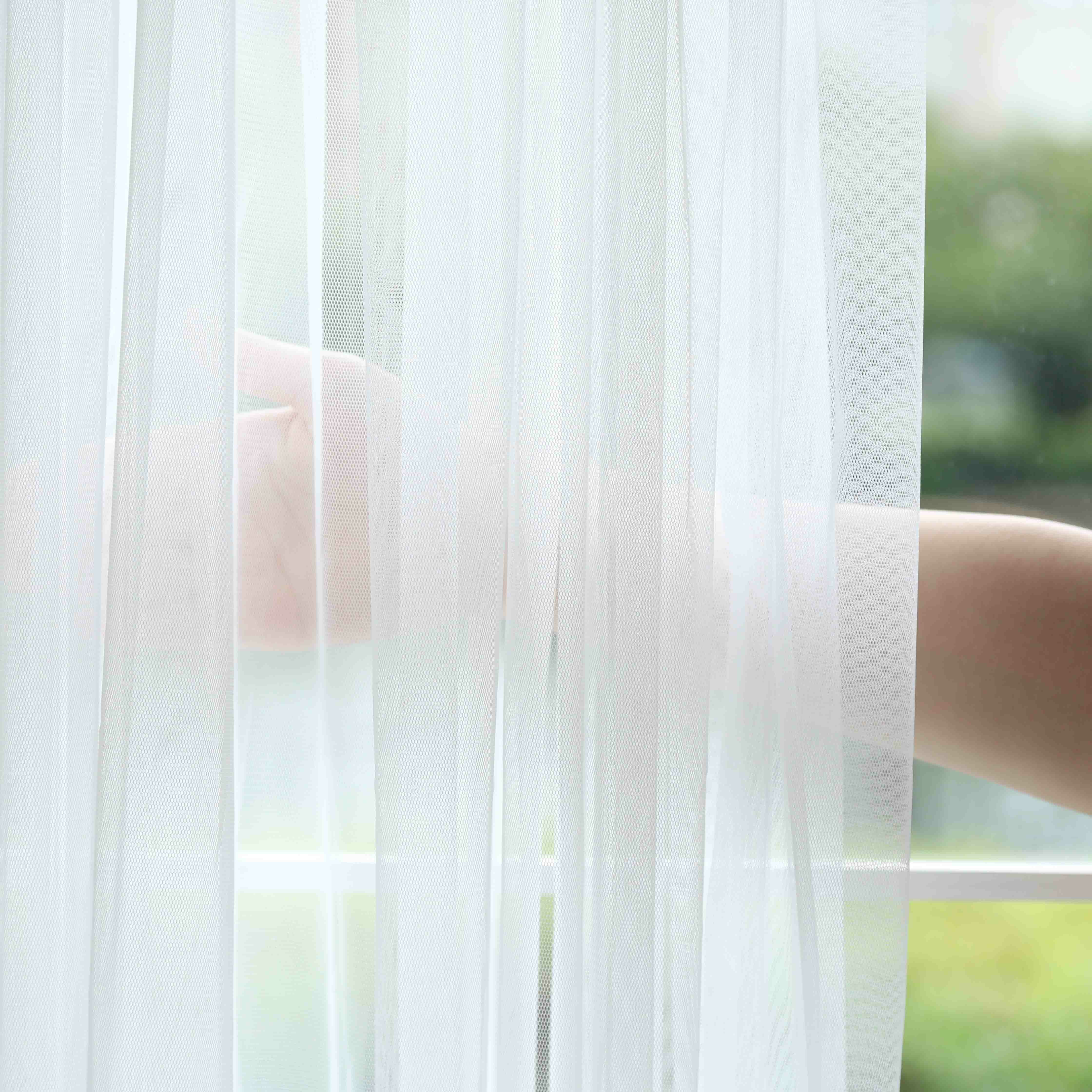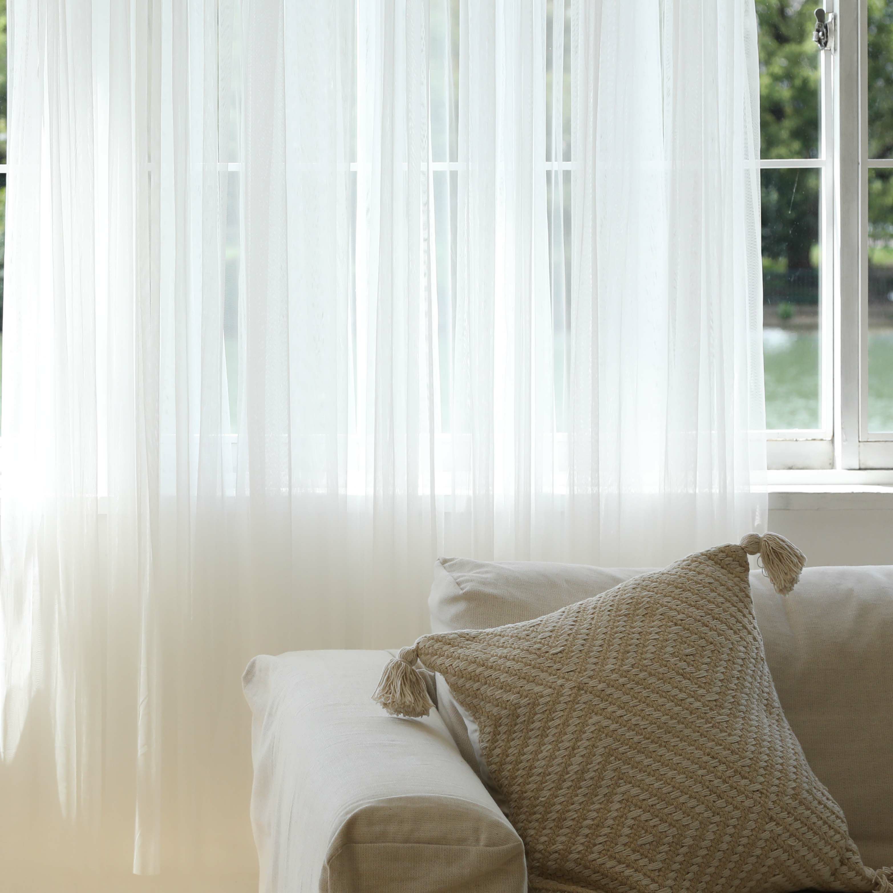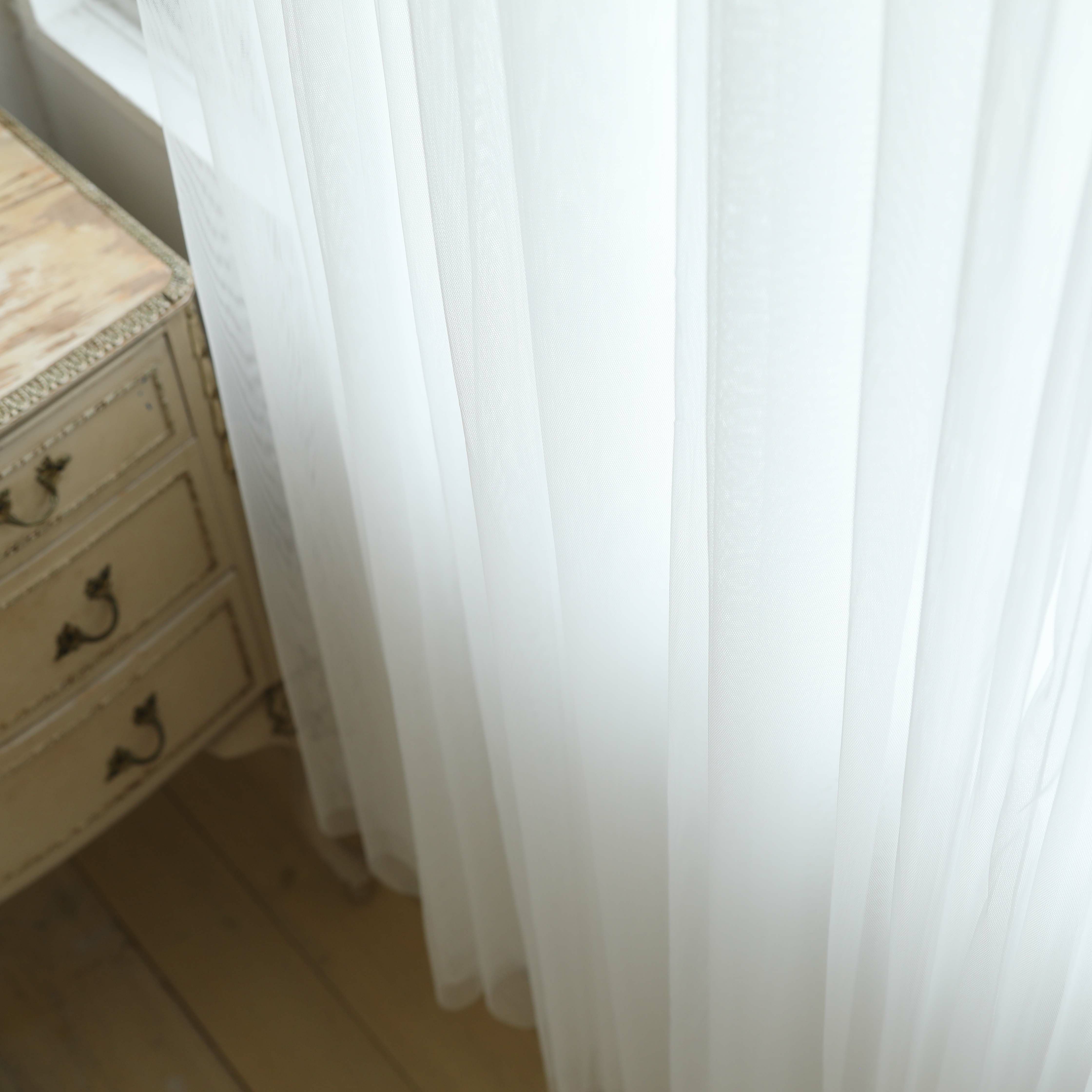 繊細に編まれたチュール生地をふんだんに使用し、ボリュームたっぷりのカーテンに仕上げました。