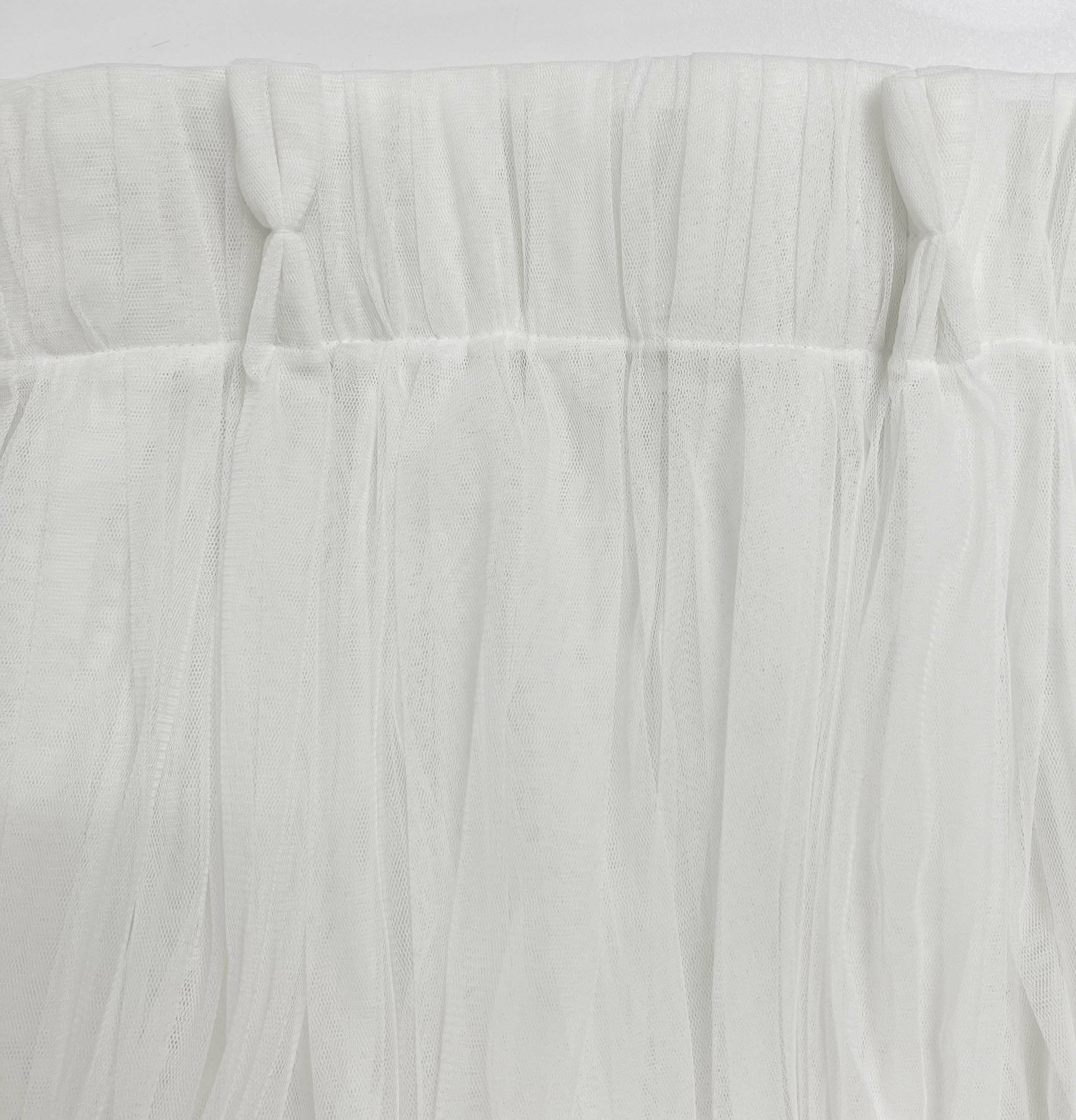裾部分は切りっぱなしにすることで、チュールの持つラフな雰囲気を表現しています。