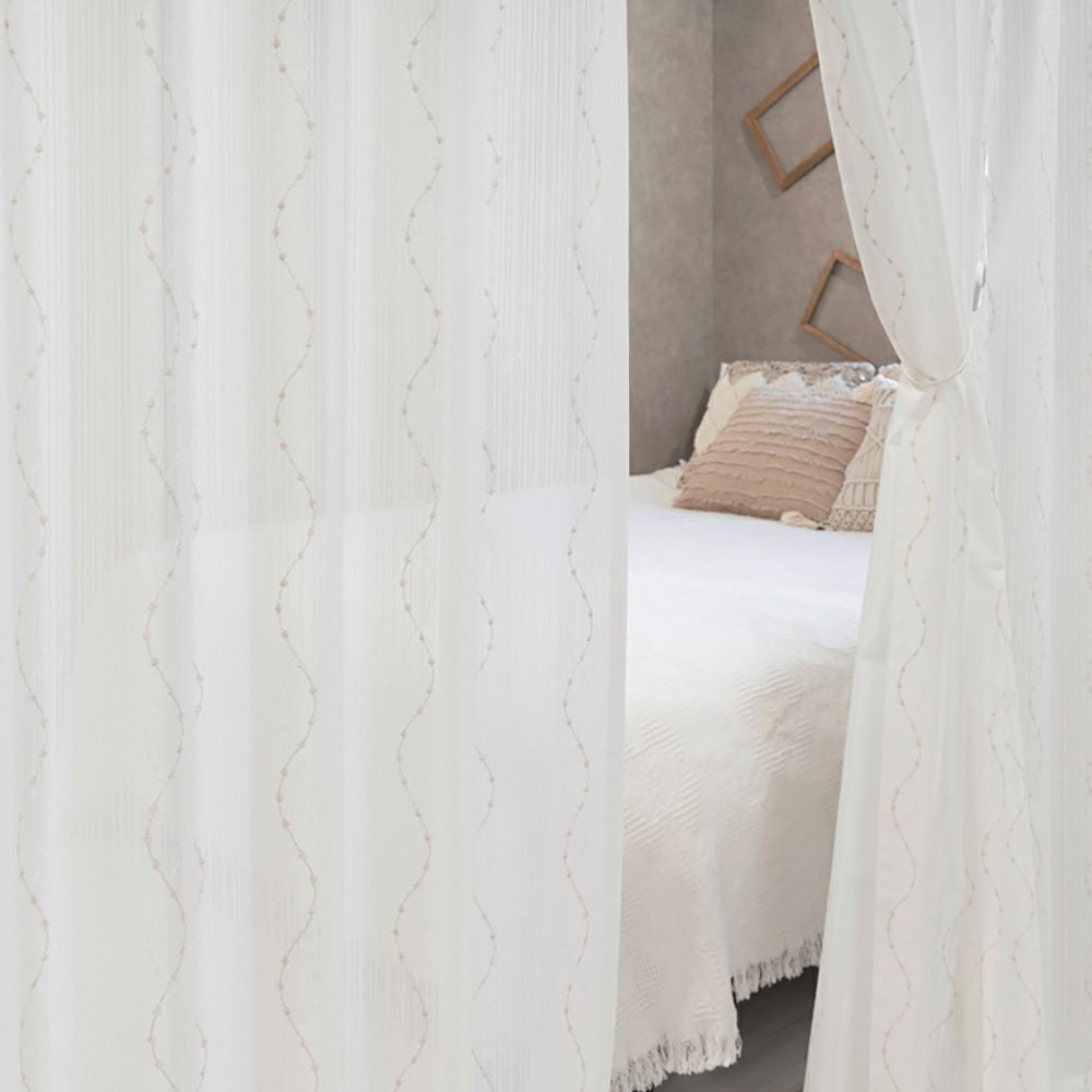【カプリス】 UVカット 防炎 遮熱 洗濯可 ウェーブ柄 レースカーテン