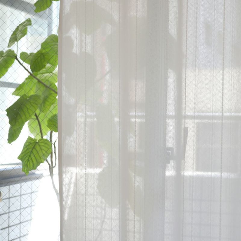 どんなカーテンにも合わせやすいストライプレースです。優しい風合いのベースに、光沢のあるピンストライプがシンプルで飽きがこないデザインです。遮熱機能が付いているので、夏にもオススメのレースカーテンです。ミラーレース機能付きのため、日中は外からの視線も遮ることができます。ご家庭での洗濯も可能なため、長く清潔にお使いいただけます。