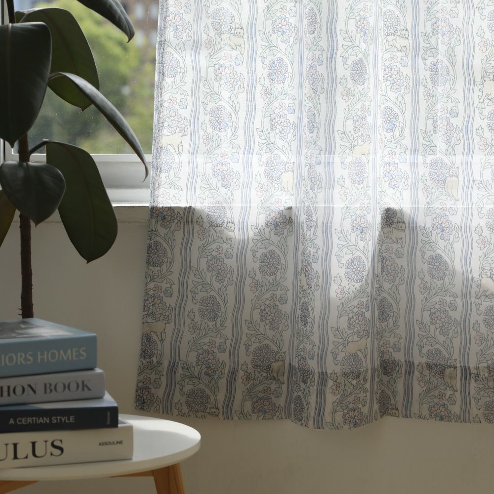 他の画像を見る 【ANGEL BLUE】 ヴィンテージプリントパイピング エンジェルブルー 洗濯可 UVカット 遮熱 保温 遮像 洗濯可 フラットカーテン 販売価格 ¥ 3,620 税込 お気に入りに登録する