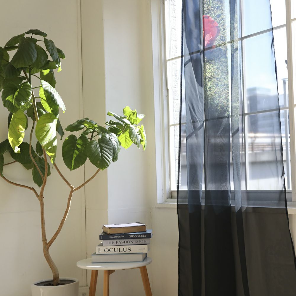 透明感あふれるオーガンジー生地が、自然の光と共にやさしい透け感を演出し、まるで窓辺に椿の美しさが溶け込むような雰囲気に。