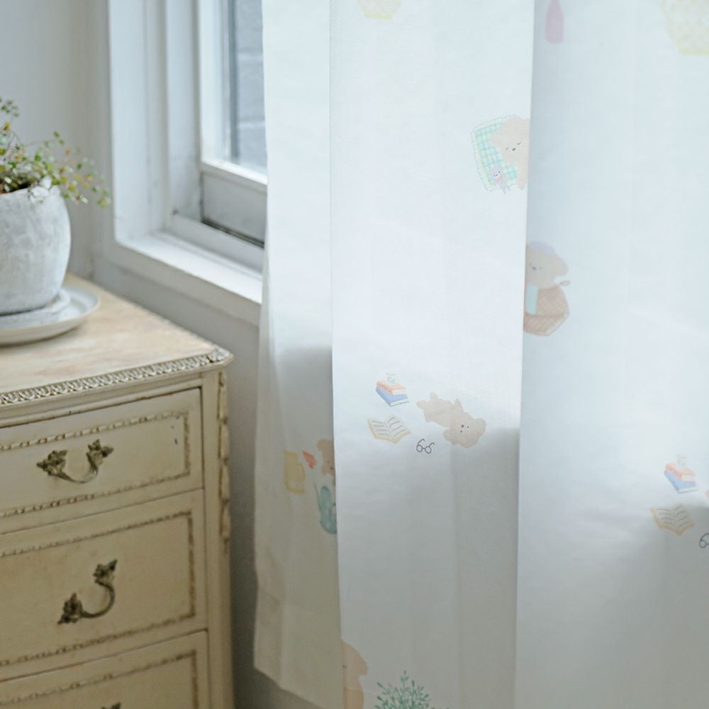 愛らしいイヌの何気ない日常をデザインしました。 イヌを飼ったことのある人なら、「あるある!」と思う場面が描かれているのでは? リラックス感のある優しいタッチで描いているので、寝室などのお部屋や子ども部屋にもおすすめです。 ご家庭での洗濯も可能なため、長く清潔にお使いいただけます。