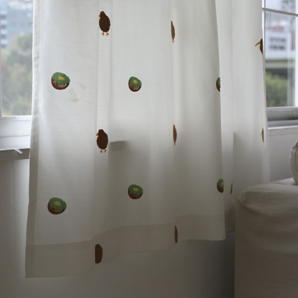 もこもことした立体的な刺繍で、果物のキウイと愛らしい鳥の「キーウィ」をあしらったユニークなデザインのドレープカーテンです。 自然のモチーフと柔らかな生地が、お部屋に温かみと遊び心をプラスします。 かわいらしいデザインは、子供部屋はもちろん、リラックス空間にもぴったり。 優しい雰囲気を演出するカーテンで、毎日の暮らしにほっとするひとときを。