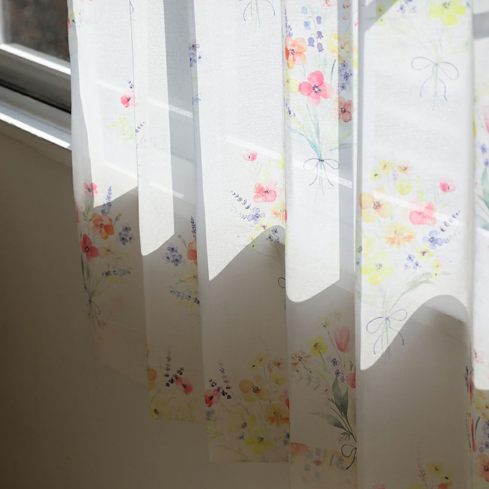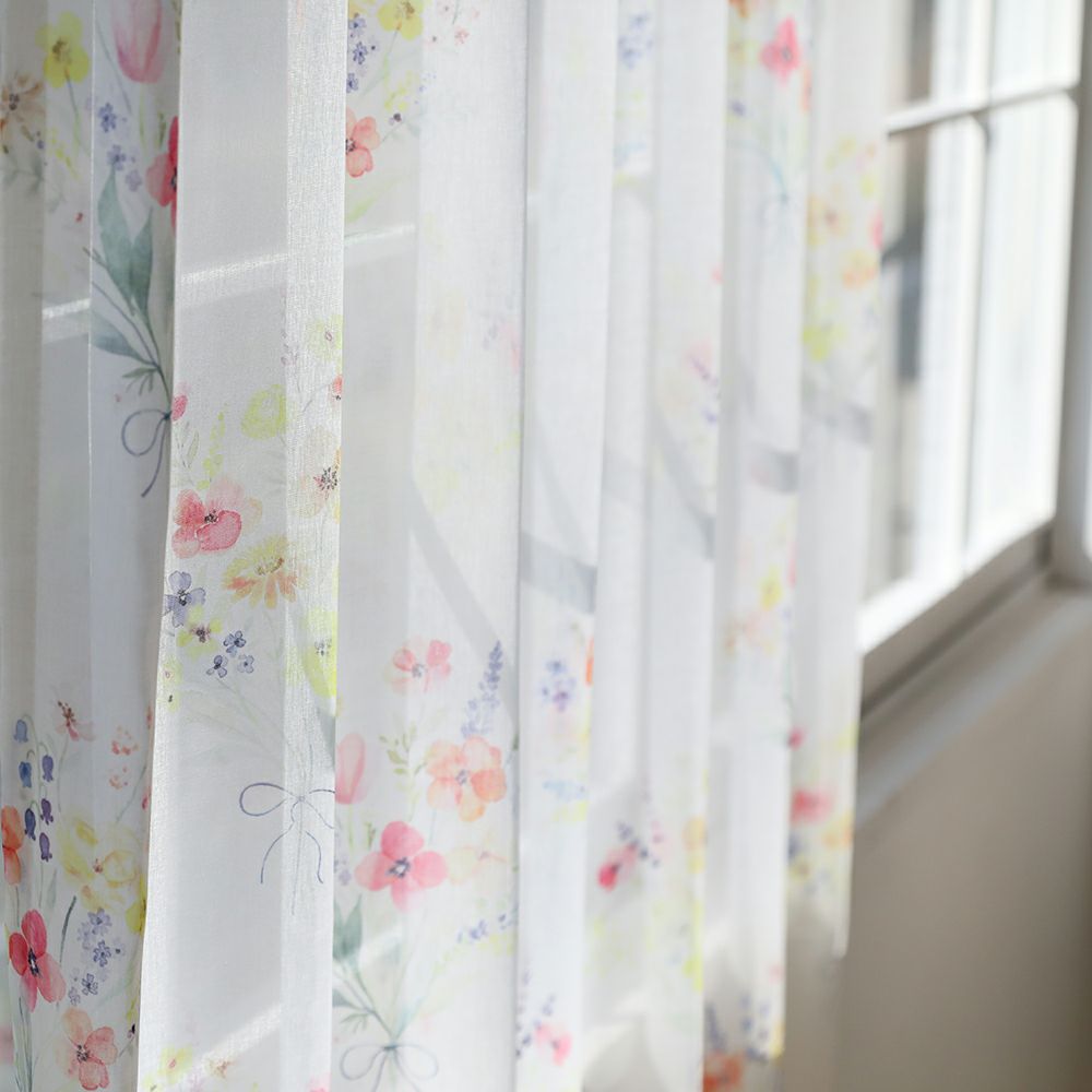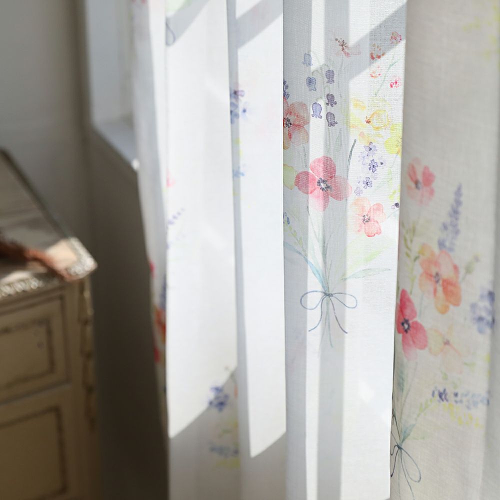 ふんわりした水彩画風のタッチで描いたお花のブーケ 花びらの透け感とシアーな素材の生地の相性が抜群です。 ほんのりベージュがかった生地なので、ナチュラルテイストなお部屋とも相性抜群です。 同柄の厚地カーテン【ブーケ】もご用意しております。 VENIRCでしか買えない特別なデザインです。 ご家庭での洗濯も可能なため、長く清潔にお使いいただけます。
