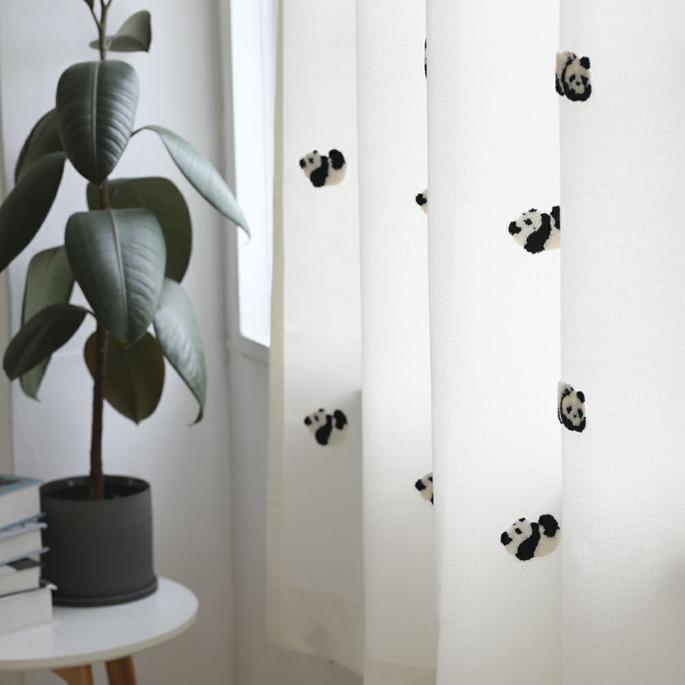 人気商品につき在庫僅少のため、ご購入時はお問い合わせフォームより「サイズ」「枚数」をご連絡くださいませ。 愛らしいパンダたちが寝そべったり、転がったりする姿を、もこもことした刺繍で描いたドレープカーテンです。 柔らかな白地のカーテンに、ふんわりと立体感のあるパンダの刺繍がアクセントになり、お部屋に遊び心と癒しをプラスします。 かわいらしいデザインは、子供部屋はもちろん、リラックス空間にもぴったり。 優しい雰囲気を演出するカーテンで、毎日の暮らしにほっとするひとときを。