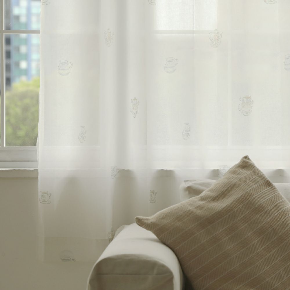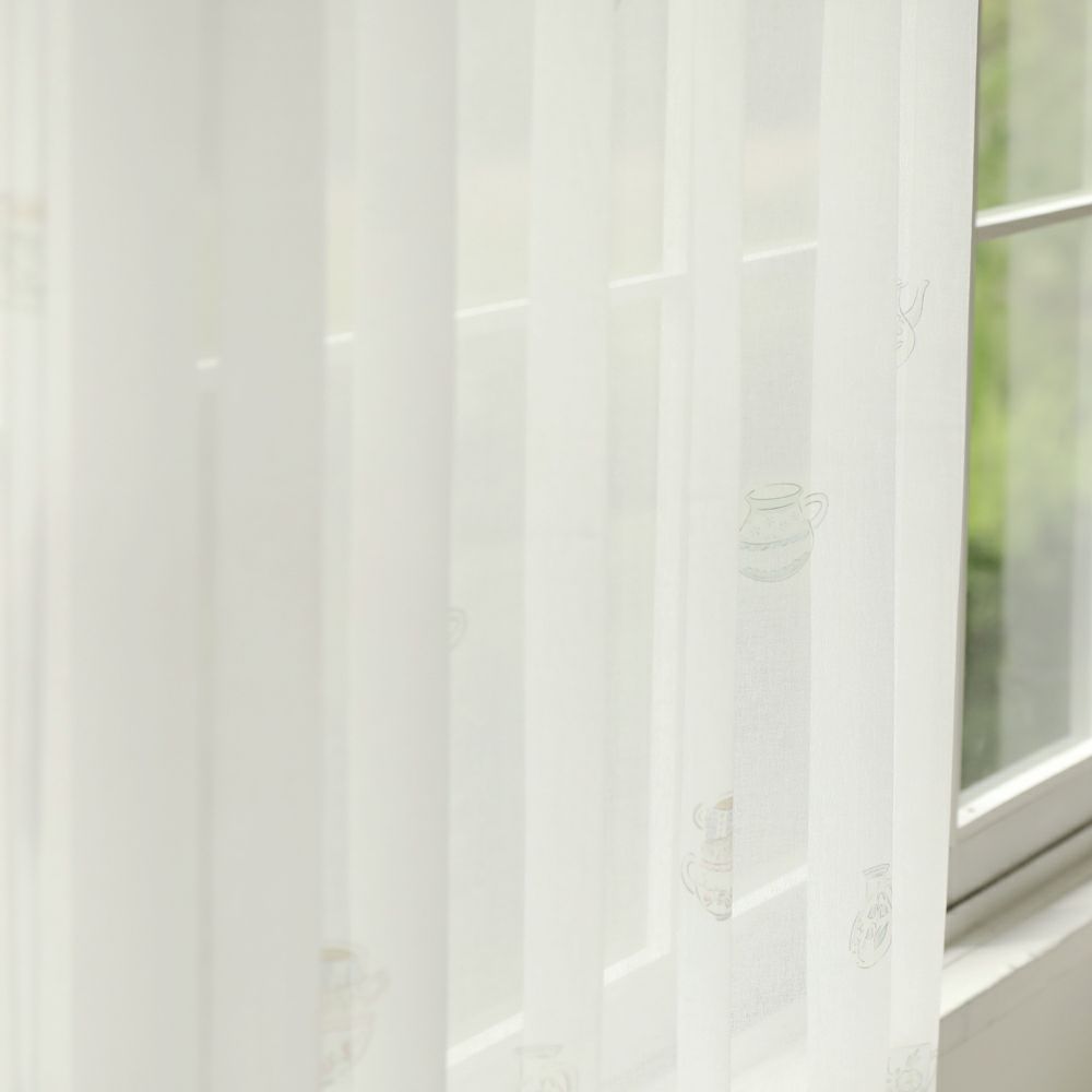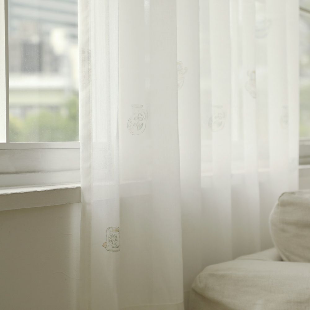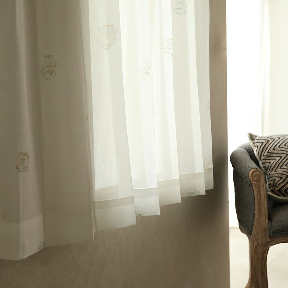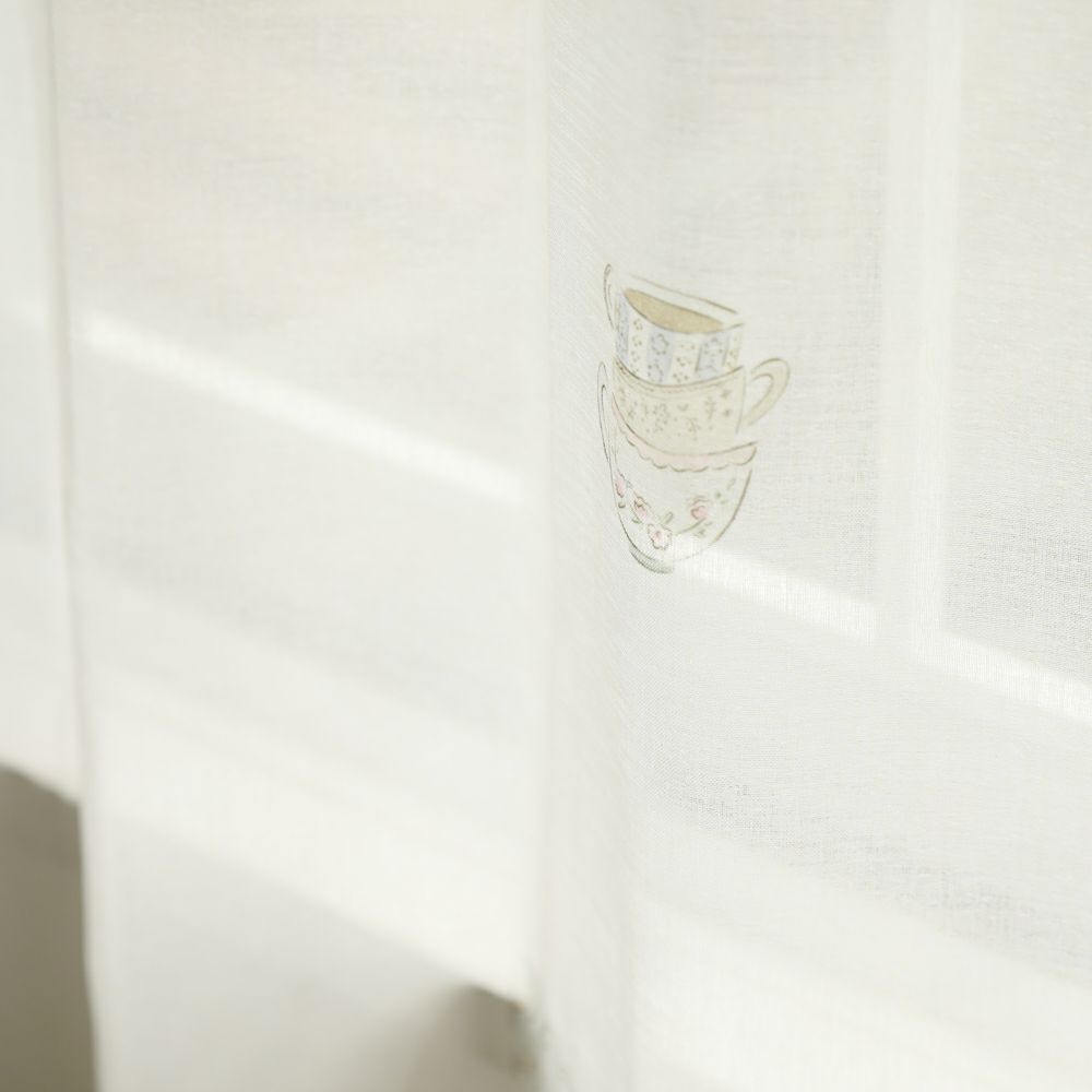 アンティークな雰囲気たっぷりのティーカップ柄レースカーテンです。 ほんのりベージュがかった色合いと、柔らかな質感の生地により、どこかほっとする雰囲気を演出します。 ナチュラル系のインテリアにも相性抜群です。 VENIRCでしか買えない特別なデザインです。 ご家庭での洗濯も可能なため、長く清潔にお使いいただけます。