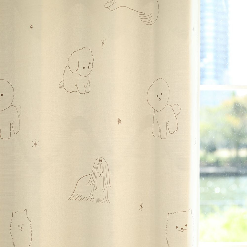 ゆるっとした表情のいぬに癒されるデザインのカーテンです。 手書き風の線で描かれており、リラックス感があるデザインなので、寝室などの落ち着いたお部屋にもおすすめです。 VENIRCでしか買えない特別なデザインです。 ご家庭での洗濯も可能なため、長く清潔にお使いいただけます。