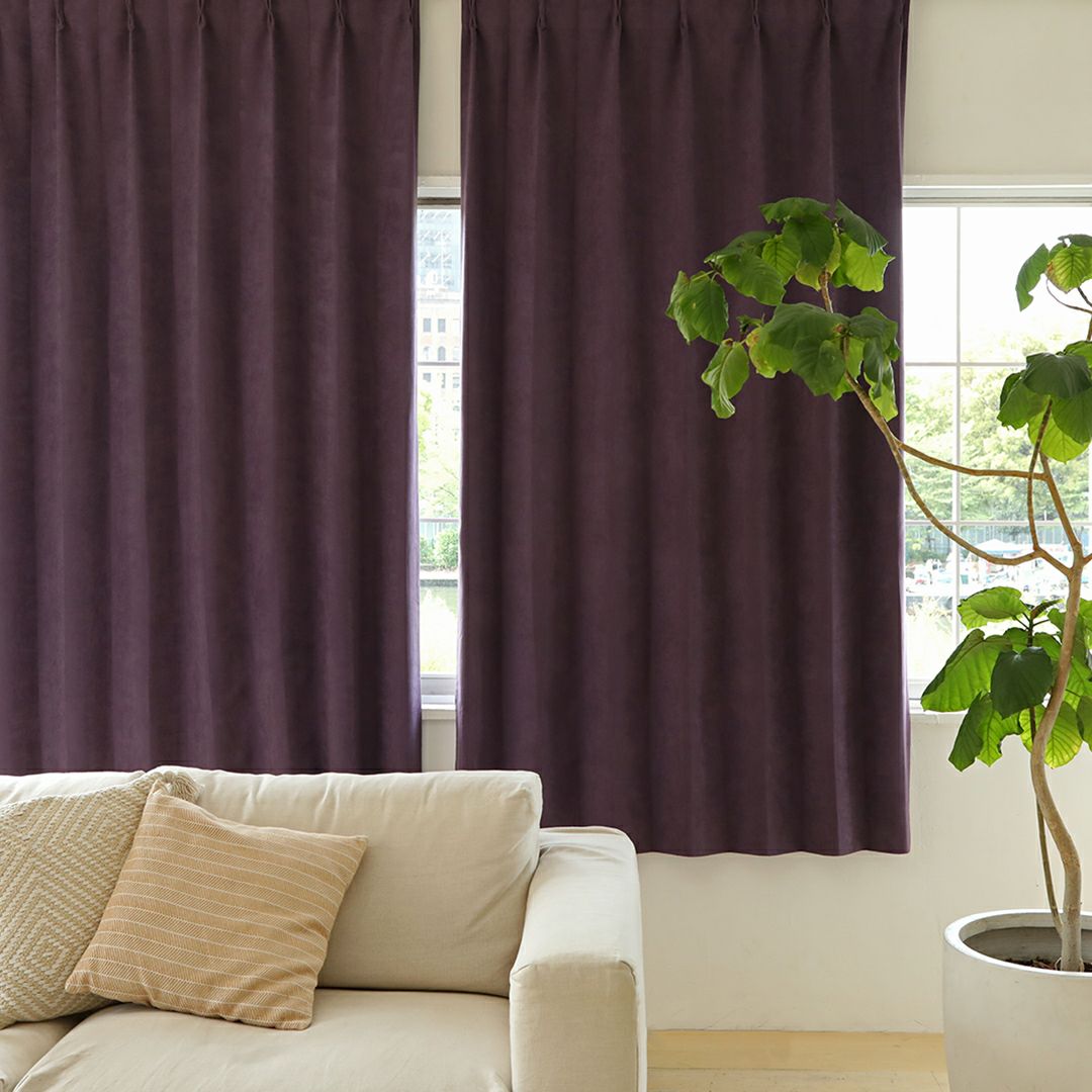 ピーチスキンのような柔らかな手触りの生地を使用しました。 深みのある紫色がお部屋を引き締めます。 一級遮光の機能付き。 寝室などのしっかりと光を遮りたいお部屋におすすめです。