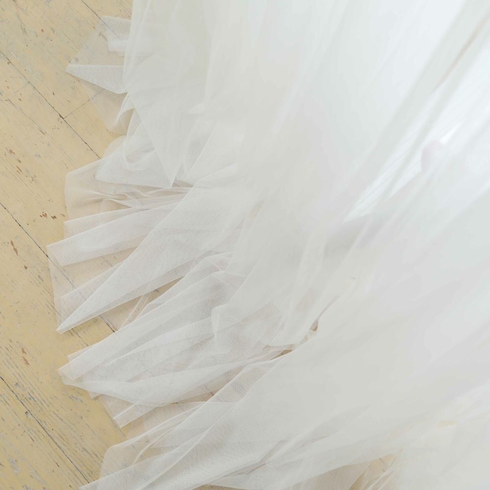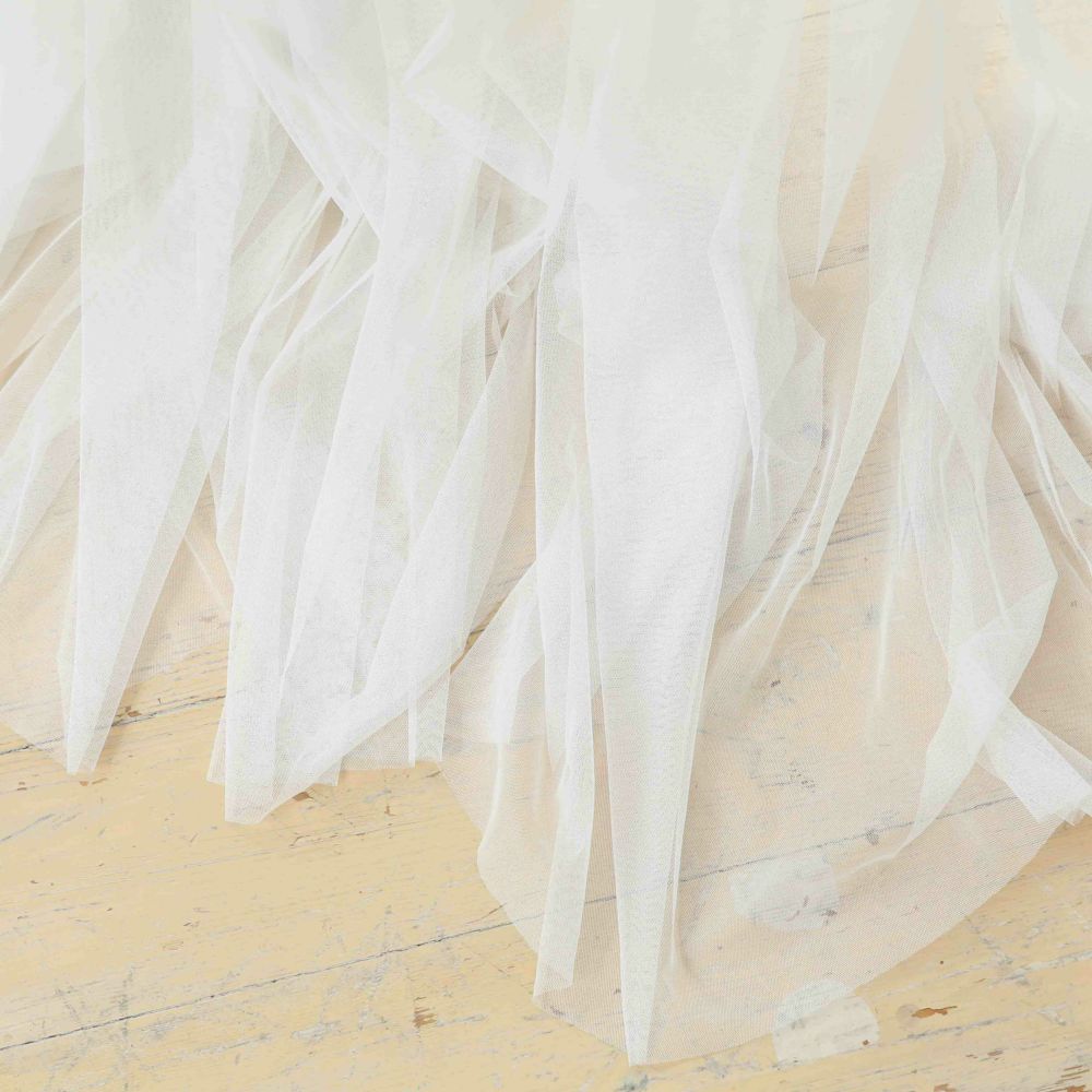 裾部分は切りっぱなしにすることで、チュールの持つラフな雰囲気を表現しています。