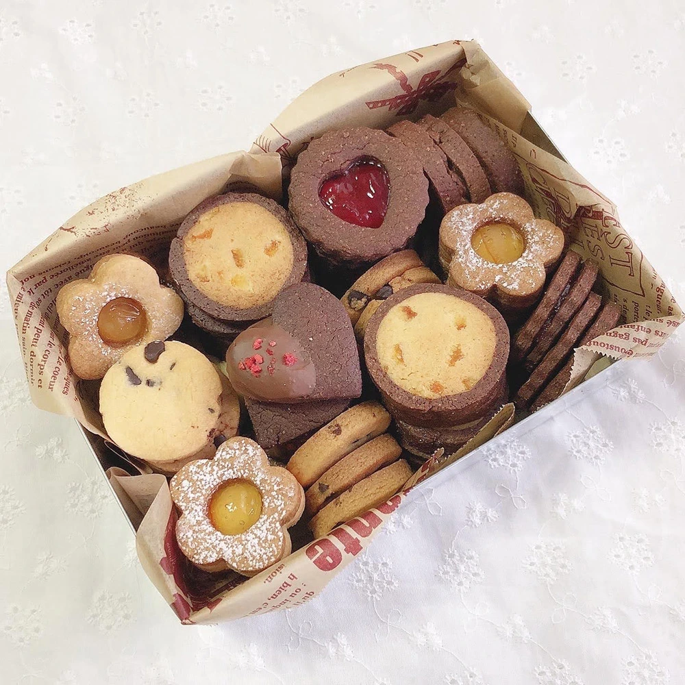 お菓子屋さんで売っているクッキー缶に入っている昔ながらのクッキーをイメージしました。