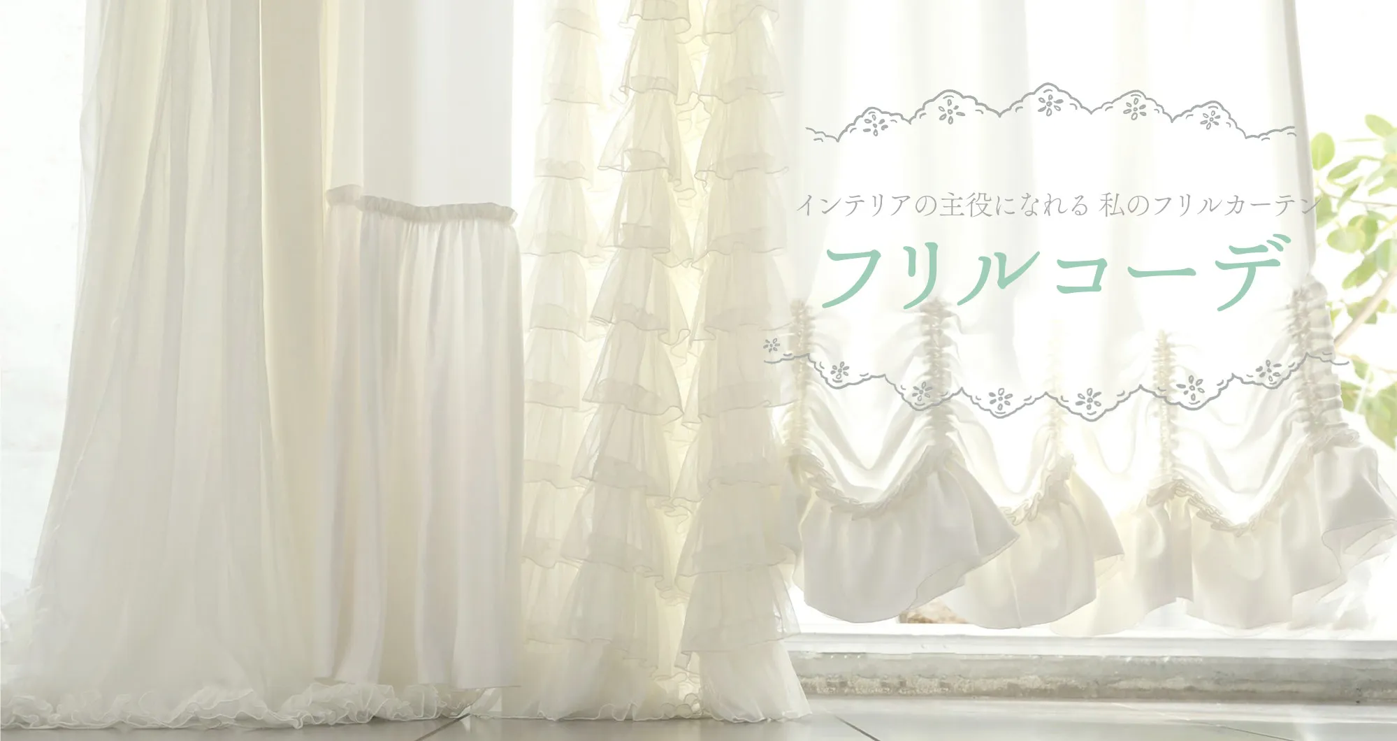 ぜひお気に入りのデザインを見つけてください。 フリルコーデカーテン一覧はこちら