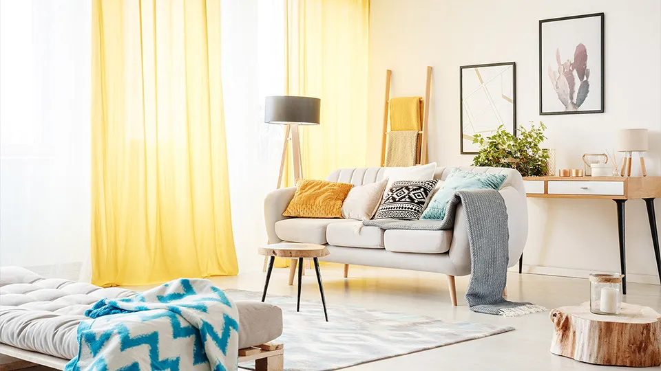 イエロー、オレンジ、ピンクなどの活気ある色をアクセントカラーとして使用することで、お部屋にポイントを加えることができます。家具や小物との相性を考えながら取り入れましょう。