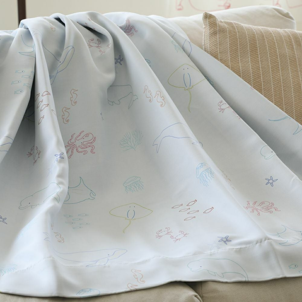カーテンの生地サンプルです。ご購入前にお手に取ってお確かめください。 ゆるっと海のいきものサンプル生地